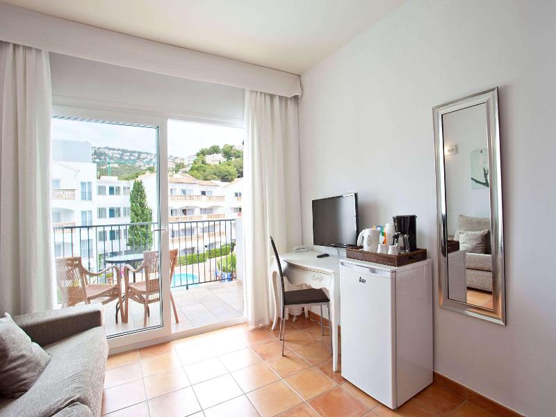 El Aparthotel La Pérgola se encuentra en Port d’Andratx, en la costa oeste de Mallorca, a tan solo 30 minutos de la capital, Palma. Este apartotel de 4 estrellas en Mallorca es perfecto para unas vacaciones en familia, con amigos o en pareja. Ofrece todos los servicios y comodidades que necesitas para que cada uno disfrute de sus vacaciones a su manera. Un acogedor complejo de estudios, apartamentos de una y dos habitaciones, bungalows y villas de cuatro estrellas situado a dos minutos a pie del Club de Vela de Puerto de Andratx. El complejo cuenta con una piscina exterior y otras para niños rodeadas de tumbonas y sombrillas. Una piscina interior climatizada con jacuzzi, sauna y gimnasio. Restaurante buffet, piano bar, miniclub, zona infantil, parque infantil, pista de tenis, aparcamiento gratuito y wifi (de pago) en todo el complejo.