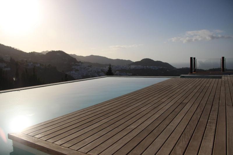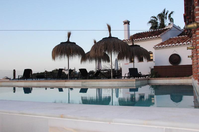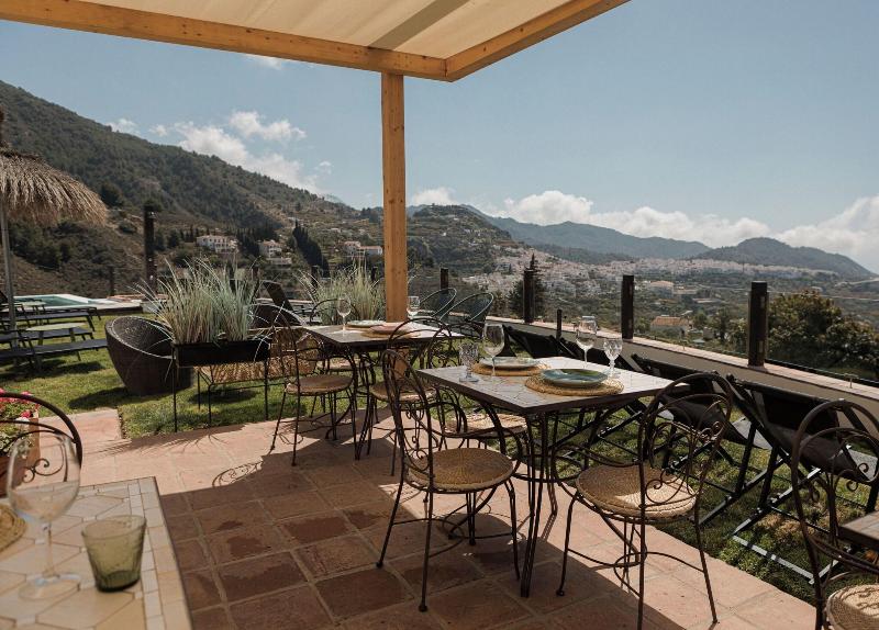 Esta Finca se encuentra en un pequeño oasis, en el corazón del Condado de Frigiliana, con vistas a la Villa de Frigiliana, el Parque Natural de Sierras de Alhama y pequeños campos que se extienden hasta la desembocadura del río Seco. La vegetación tropical y el Mediterráneo en la distancia completan el panorama. El centro del pueblo, con sus tiendas, bares y discotecas, está a unos 15 minutos a pie. La estación de autobuses y otras conexiones de transporte público están a unos 20 minutos a pie. El centro turístico y la playa se encuentran a unos 60 minutos a pie. El aeropuerto de Málaga está a unos 50 km de la Finca. La Finca cuenta con un jardín, una terraza y 12 habitaciones decoradas con un exquisito estilo morisco, con suelos de barro y paredes angulares como las de las antiguas casas de la Villa de Alcóncar. El complejo es una finca restaurada de la década de 1940 que ofrece todas las comodidades modernas e ideal para quienes desean pasar sus vacaciones en un entorno natural. La Finca dispone de aire acondicionado, caja fuerte, cafetería y un restaurante a la carta con aire acondicionado y tronas para bebés. Además, el complejo cuenta con guarda bicicletas, alquiler de bicicletas y aparcamiento. El servicio de habitaciones completa la oferta. Las habitaciones están decoradas con materiales locales, como barro, azulejos azules hechos a mano, colores brillantes y techos de madera ornamentados. Todas las habitaciones están elegante y confortablemente diseñadas, con un estilo y confort rústicos. Las habitaciones, distribuidas como una pequeña finca, están equipadas con TV, teléfono, baño con bañera, ducha y secador de pelo, cama doble, caja fuerte de alquiler, zona de estar y chimenea, además de una terraza con vistas al mar. Hay una piscina en los jardines. El complejo ofrece un entorno ideal para actividades como equitación, parapente, ciclismo, natación y excursiones.