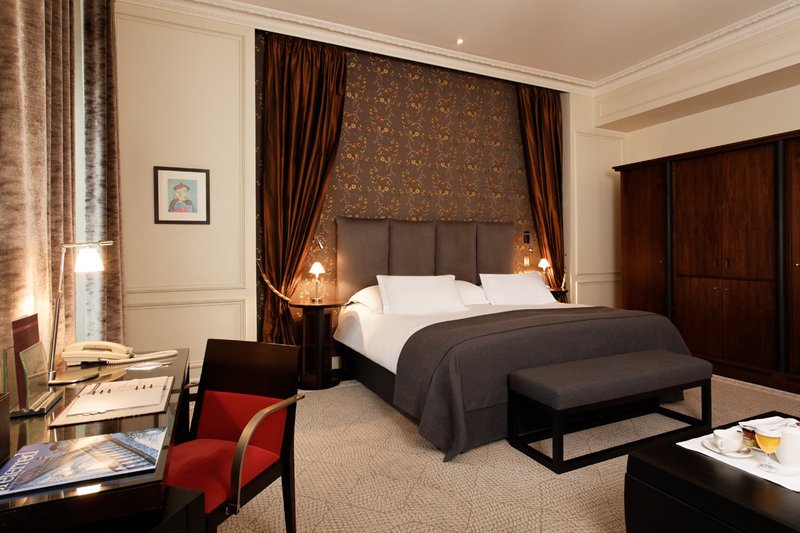 La fachada del siglo XIX del lujoso hotel ha recuperado su esplendor original gracias a una restauración en la que se prestó especial atención a las molduras y los balcones de hierro forjado. El tejado también se ha renovado para que el edificio encaje a la perfección en el paisaje arquitectónico del centro de París. Al entrar en el hotel, un estilo claramente contemporáneo domina el ambiente, aunque las habitaciones y suites muestran aún con orgullo los adornos del techo y las chimeneas de mármol de la estructura original.