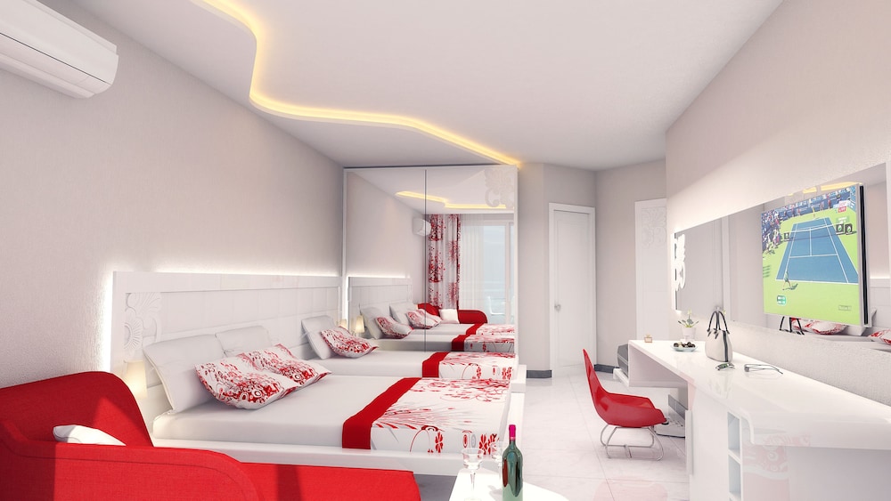 Situada en Alanya, esta propiedad ofrece un lugar de descanso y relajación ideal. El Hotel fue construido en 2016. Hay un total de 256 habitaciones. La propiedad consta de 10 habitaciones individuales, 130 habitaciones dobles, 3 estudios, 3 habitaciones accesibles para minusválidos, 39 habitaciones triples y 22 habitaciones familiares. El Hotel goza de una ubicación idílica en el corazón de la ciudad. Los huéspedes encontrarán varias paradas de autobús y metro a tan solo unos pasos. El Hotel está ubicado a pocos kilómetros del aeropuerto. El Hotel está a escasa distancia de las principales zonas de entretenimiento de la ciudad. El Hotel está muy cercano a la playa. La propiedad cuenta con acceso para minusválidos. Hay aparcamiento en las instalaciones.