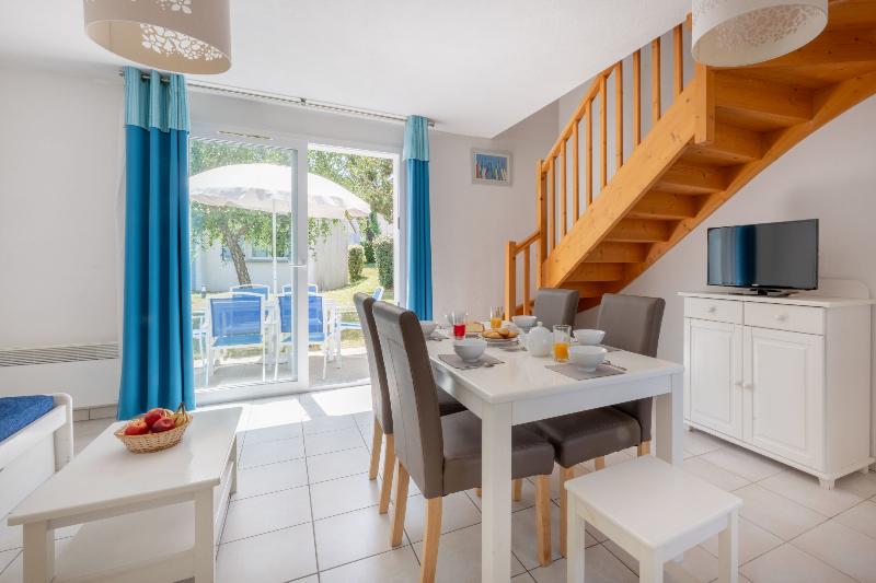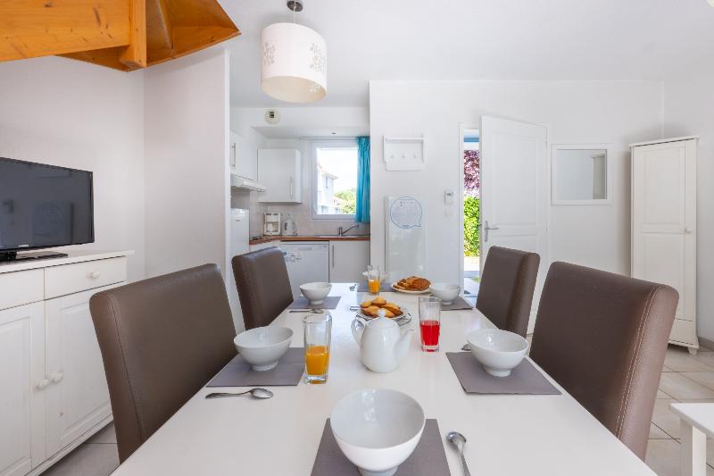 Ubicado entre La Baule y Pornic, a solo 15 km de Saint Nazaire, Saint Brevin es un destino familiar que cuenta con 8 km de playas de arena perfectas para unas vacaciones relajantes o activas. Residence le Domaine de l’Océan, enclavado entre bosques y dunas a tan solo 600 m de la playa, ofrece encantadoras casas blancas adosadas. Estos alquileres vacacionales varían desde apartamentos de una habitación para cuatro personas hasta apartamentos de dos habitaciones con capacidad para seis, todos equipados con wifi y TV gratis. Cada casa dispone de una terraza privada y está conectada por pintorescos senderos. Los huéspedes pueden disfrutar de una variedad de servicios, que incluyen una piscina climatizada al aire libre con piscina infantil (abierta desde mediados de mayo hasta mediados de septiembre), pistas de petanca, tenis de mesa, un parque infantil, un gimnasio y aparcamiento gratuito al aire libre (una plaza por alojamiento, con reserva previa). También hay servicio de lavandería disponible por un suplemento.