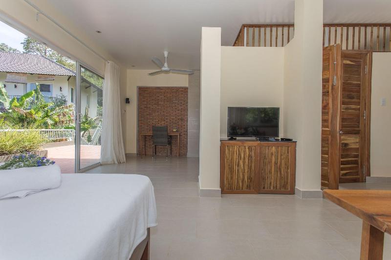 Alójate en Le Forest Resort, en Cua Lap (Phu Quoc), y estarás a 15 minutos en coche del Mercado Nocturno de Phu Quoc y de la Playa de Phu Quoc. Este hotel ideal para familias se encuentra a 12, 4 km del Parque Nacional de Phu Quoc y a 13, 9 km de la Playa de Ong Lang. Disfruta de las opciones de ocio, como una piscina al aire libre, o admira las vistas desde la terraza y el jardín. Este hotel también ofrece conexión a Internet wifi gratis, una sala de videojuegos y una televisión en la zona común. Tendrás a tu disposición servicios de tintorería/lavandería, un servicio de recepción las 24 horas y consigna de equipaje. Se ofrece un servicio de transporte al aeropuerto (ida y vuelta) de pago (disponible las 24 horas) y aparcamiento sin asistencia gratuito. Come algo en el restaurante del hotel, que ofrece vistas al jardín, o quédate en tu habitación y aprovecha el servicio de habitaciones (con horario limitado). Relájate con tu bebida favorita en el bar o lounge o en el bar junto a la piscina. Se incluye un desayuno completo gratuito. Te sentirás como en casa en una de las 28 habitaciones con aire acondicionado, minibar y televisor de pantalla plana. Las habitaciones disponen de balcón o patio privado. La conexión a Internet wifi gratis te mantendrá en contacto con los tuyos, y la programación por cable te mantendrá entretenido. El baño privado con ducha está provisto de artículos de higiene personal gratuitos y secadores de pelo.