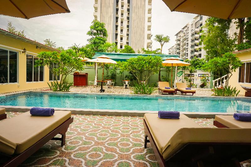 Alójate en Le Kree Downtown Hotel en Phnom Penh y estarás a 6, 3 km de Tuol Tom Pong Market y a 6, 5 km del Estadio Olímpico. Este hotel de 4 estrellas está a 6, 9 km del Museo del Genocidio Tuol Sleng y a 7, 6 km del Mercado Central. Consiéntete con masajes en las instalaciones o disfruta de las opciones recreativas, como un gimnasio. Este hotel también ofrece acceso inalámbrico a internet de cortesía, servicios de concierge y un área de pícnic. Tendrás periódicos gratuitos en el vestíbulo, servicio de tintorería/lavandería y recepción disponible las 24 horas a tu disposición. Hay estacionamiento gratis en las instalaciones. Pásate por La Véranda Café & Bistro, el restaurante del hotel, para el almuerzo o la cena. También tienes una cafetería a tu disposición para comer algo y servicio a la habitación con horario limitado. Sacia tu sed con tu bebida favorita en el bar o lounge. Todos los días se sirve un desayuno completo de 6:00 a 10:00, con cargo. Te sentirás como en casa en una de las 55 habitaciones con aire acondicionado, minibar y televisión de pantalla plana. El acceso inalámbrico a internet de cortesía te mantendrá conectado y la programación por cable te mantendrá entretenido. Los baños disponen de artículos de tocador gratuitos y batas. Las comodidades incluyen caja fuerte y escritorio, además de servicio de limpieza diario.