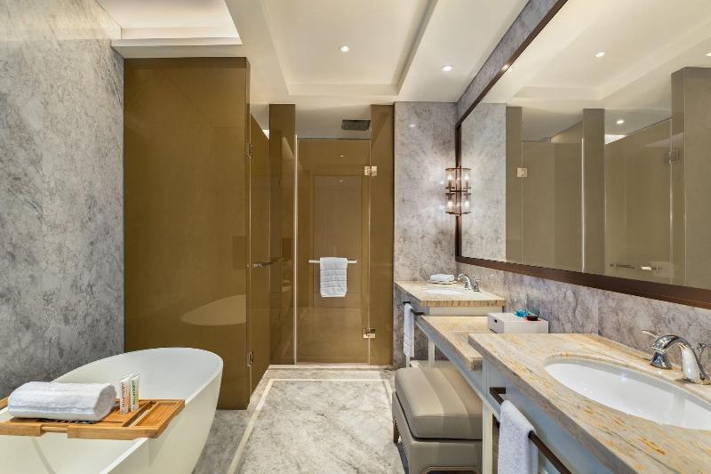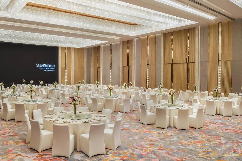 Ubicado en Suzhou (Wujiang), Le Méridien Suzhou, Suzhou Bay está a 15 minutos en coche del Museo Wujiang y del Jardín Jingsi. Este hotel de lujo se encuentra a 17, 6 km del Jardín Retreat & Reflection y a 29, 8 km de la ciudad antigua de Zhenze. Relájate en el spa de servicio completo, donde podrás disfrutar de masajes, tratamientos corporales y faciales. Si buscas opciones de recreación, encontrarás una piscina cubierta, un sauna y un gimnasio abierto las 24 horas. Otros servicios de este hotel art déco incluyen acceso inalámbrico a internet gratuito, servicios de conserjería y una sala de juegos electrónicos. Siéntete como en casa en una de las 285 habitaciones con decoración individual, que incluyen estaciones de conexión para iPod y minibar. Tu cama Select Comfort incluye edredones de plumas y ropa de cama de primera calidad. Los televisores LCD de 55 pulgadas con programación por cable te ofrecen entretenimiento, mientras que el acceso inalámbrico a internet gratuito te mantiene conectado. Los baños privados con bañera y ducha independientes incluyen cabezales de ducha tipo lluvia y artículos de tocador de diseñador. Disfruta de la cocina china en ??????, uno de los 3 restaurantes del hotel, o quédate en tu habitación y aprovecha el servicio a la habitación (en horario limitado). También hay refrigerios disponibles en la cafetería. Termina tu día con una bebida en el bar o lounge. Se sirve desayuno tipo bufé de lunes a viernes de 6:30 a 10:00 y los fines de semana de 6:30 a 10:30 con un cargo adicional. Los servicios destacados incluyen acceso a internet por cable gratuito, centro de negocios y servicio de limusina o coche con chofer.