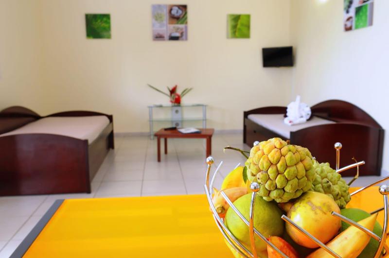 Alójate en LE VILLAGE POMME CANNELLE en Le Precheur y estarás cerca de la playa, a solo 1 minuto a pie de Islas de Barlovento y a 7 minutos de Plage de la Charmeuse. Este hotel ideal para familias se encuentra a 1, 7 km de Plage du Prêcheur y a 2, 1 km de Plage du Prêcheur. No te pierdas las numerosas opciones recreativas que ofrece el hotel, que incluyen una piscina al aire libre, una bañera de hidromasaje y un gimnasio abierto las 24 horas. Se ofrecen también conexión a Internet wifi gratis, servicios de conserjería y servicio de canguro (de pago). Tendrás consigna de equipaje, lavandería y una biblioteca a tu disposición. Puedes solicitar un servicio de transporte al aeropuerto (ida y vuelta) de pago y hay un aparcamiento sin asistencia gratuito disponible. Prueba la cocina caribeña en Restaurant du Village, un restaurante junto a la piscina con vistas a la piscina. Y para terminar bien el día, tómate algo en el bar o lounge. Se sirve un desayuno completo todos los días de 7:00 a 9:30 (de pago). Siéntete como en casa en una de las 16 habitaciones con aire acondicionado y cocina con frigorífico/congelador grande y placa de cocina. La pequeña cocina está equipada con microondas. La televisión de pantalla plana con canales digitales proporciona entretenimiento y la conexión a Internet wifi gratis te mantendrá conectado. Entre las comodidades, se incluyen caja fuerte y cafetera y tetera, además de un servicio de limpieza disponible de forma limitada.