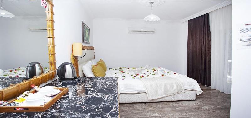 Alójate en London Hotel en Fethiye, en la Strip, y estarás a 10 minutos en coche de Oludeniz Beach y del Ölüdeniz Nature Park. Este hotel de playa se encuentra a 15, 1 km de Calis Beach y a 14, 7 km del Valley of the Butterflies. Disfruta de las vistas desde el jardín y aprovecha las comodidades que te ofrece este hotel, como conexión a Internet wifi gratis y asistencia turística (adquisición de entradas). Tendrás consigna de equipaje y una biblioteca a tu disposición. Se ofrece un servicio de transporte al aeropuerto (ida y vuelta) de pago (disponible las 24 horas), así como aparcamiento sin asistencia gratuito. Come algo en el restaurante o tómate un aperitivo en la cafetería. El hotel también ofrece servicio de habitaciones con horario limitado. Pon punto y final a un día perfecto tomando una copa en el bar o lounge. Se sirve un desayuno completo todos los días de 9:00 a 11:00 con un coste adicional. Te sentirás como en casa en una de las 18 habitaciones con aire acondicionado, balcón o patio privado. La conexión a Internet wifi gratis te mantendrá en contacto con los tuyos. El baño privado con ducha está provisto de artículos de higiene personal gratuitos y secadores de pelo.