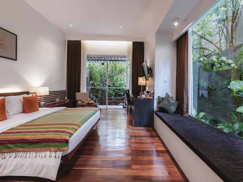 Lynnaya Urban River Resort Siem Reap, un hotel boutique de lujo creado por un aclamado arquitecto, presenta 46 habitaciones de diseño contemporáneo y espacios públicos con una estética inspirada en la cultura jemer. Este excepcional hotel goza de un entorno tranquilo y arbolado dentro del municipio de Siem Reap, a solo 15 minutos en tuk tuk de los magníficos templos de Angkor Wat. Lynnaya Urban River Resort, con una cultura de 'Puertas Abiertas, Corazones Abiertos', refleja nuestro compromiso con el turismo responsable. Esperamos que durante tu visita abras tu corazón a la belleza del Reino de Camboya, su amable gente y su fascinante cultura. El cargo por la cena de gala obligatoria de Nochevieja está incluido en el precio total que se muestra para las estancias del 31 de diciembre.