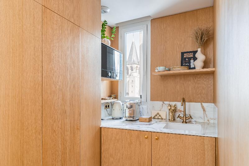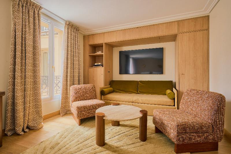 Situado frente a la iglesia de Saint-Germain-des-Prés, el hotel se encuentra en el corazón del Barrio Latino de París. Su ubicación te permite acceder fácilmente a los principales lugares turísticos de París, como el Louvre, el Museo de Orsay y la Catedral de Notre Dame, todos a aproximadamente 1, 1 km de distancia. El Jardín de Luxemburgo está a unos 15 minutos a pie del hotel, y las tiendas de la Rue de Rennes a solo 1 minuto. Este hotel urbano ofrece modernas habitaciones y un bar elegantemente decorado. Se encuentra en un edificio que data de 1925 y fue completamente renovado en 2011. Está decorado con un estilo contemporáneo y ofrece un total de 50 habitaciones distribuidas en 8 plantas. Dispone de conexión inalámbrica a internet. Por las noches, puedes relajarte con una copa en el elegante bar. Otras instalaciones de este establecimiento con aire acondicionado incluyen vestíbulo, recepción y registro de salida 24 horas, caja fuerte, ascensor a las plantas superiores, sala de televisión y sala de desayunos. Las habitaciones disponen de baño privado con ducha, bañera y secador de pelo, camas dobles o extragrandes, TV, equipo de música, conexión a internet, caja fuerte y minibar. También se proporciona set de té y café y set de plancha. Las habitaciones tienen aire acondicionado y calefacción regulables individualmente. Todas las mañanas se sirve un desayuno continental en la auténtica sala de desayunos.