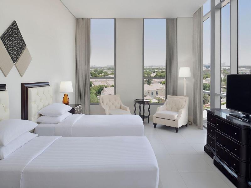 Ubicado en el Investment Park de Dubái, Delta Hotels by Marriott ofrece fácil acceso a las atracciones principales. Un corto trayecto en coche te lleva al Dubai Exhibition Centre y al Ibn Battuta Mall, mientras que Expo City Dubai y Bluewaters Island también son fácilmente accesibles. Relájate en el spa con servicio completo que ofrece tratamientos de masaje o disfruta del gimnasio abierto las 24 horas y la piscina al aire libre. El hotel ofrece acceso a internet por cable e inalámbrico de cortesía, servicio de conserjería y tiendas de regalos. Un servicio de traslado gratuito a la playa facilita los viajes a la costa. Las 253 habitaciones con aire acondicionado cuentan con minibar, Smart TV y baño privado con artículos de tocador gratuitos. Saborea la cocina internacional en el Maisan Restaurant & Bar o pide del servicio de habitaciones las 24 horas. El desayuno continental está disponible todos los días por un suplemento. Para los viajeros de negocios, se proporciona un centro de negocios abierto las 24 horas y salas de reuniones.