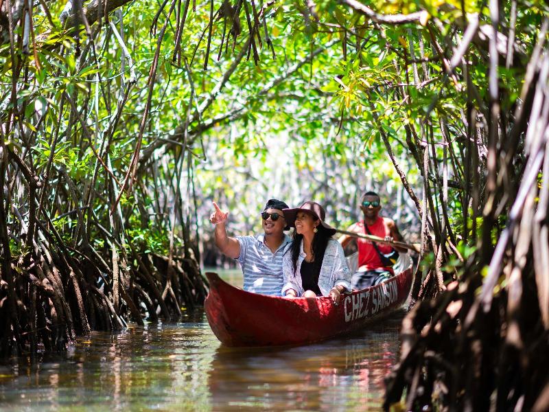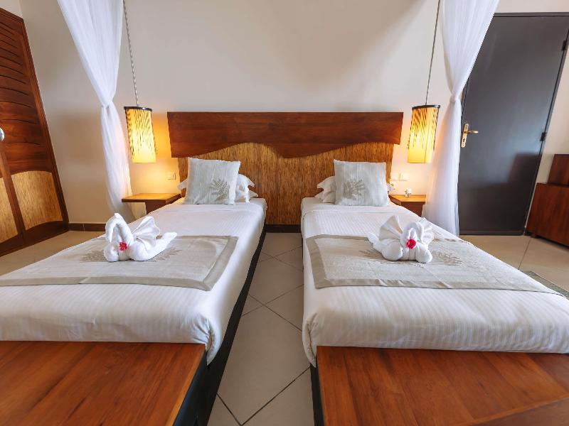 Escápate al Soanambo Hotel & Spa, un idílico refugio boutique en la isla Sainte Marie, en la costa este de Madagascar. Ubicado en un exuberante jardín tropical con impresionantes vistas al océano Índico, ofrece 48 espaciosas habitaciones Superiores bellamente decoradas con comodidades modernas. Explora la belleza natural y la rica cultura de la isla con avistamiento de ballenas, snorkel, excursiones por la isla y visitas a pueblos locales.