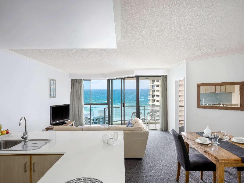 Ubicado en el corazón de Surfers Paradise, Mantra Sun City ofrece alojamiento de lujo a solo una cuadra de la playa. Mantra Sun City ofrece muchos servicios para huéspedes, como recepción las 24 horas, estacionamiento seguro gratuito, servicio a la habitación, acceso a internet en la habitación, mostrador de información turística y servicio de lavandería. Las instalaciones de ocio incluyen tres piscinas, entre ellas una piscina de inspiración azteca con dos toboganes, hidromasaje interior y exterior, spa diurno Calmer Therapies, gimnasio, cancha de tenis, sala de juegos, sauna, baño de vapor y el restaurante Sayas. En nuestras instalaciones, Koastal Kitchen ofrece cocina australiana contemporánea rápida y de gran valor, ideal para toda la familia. Las opciones de alojamiento van desde habitaciones de hotel hasta apartamentos y penthouses independientes de dos y tres dormitorios, la mayoría con vistas panorámicas al océano o al interior. Todos los tipos de alojamiento presentan una decoración de inspiración azteca e incluyen televisión por cable y balcones privados en la mayoría de las habitaciones. Todos los apartamentos y penthouses ofrecen la comodidad adicional de una cocina totalmente equipada, lavandería y balcones privados. Aprovecha la amplia gama de instalaciones del complejo o dirígete a la playa para dar un paseo informal por la explanada y termina con una comida en uno de los numerosos cafés y restaurantes que se ofrecen en Cavill Avenue. Sea lo que sea lo que te apetezca, Mantra Sun City es el lugar perfecto para tu próxima escapada a Surfers Paradise. Nota: Se requerirá una identificación con fotografía y una tarjeta de crédito para el check-in. No se aceptan depósitos en efectivo. Instalaciones de negocios: Todas las habitaciones están equipadas con teléfonos IDD y STD con puertos de datos, lo que permite un acceso rápido y fácil a Internet. Hay servicios de secretaría disponibles, incluyendo fax y fotocopias.
