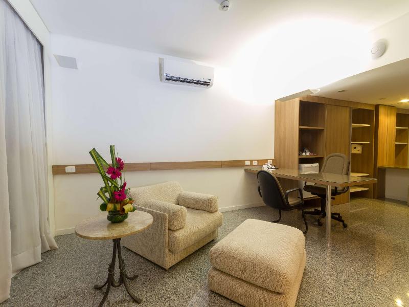 Este hotel, situado cerca de la Playa de Boa Viagem, ofrece un cómodo acceso a varias opciones de entretenimiento. El edificio de 15 plantas, con aire acondicionado, alberga 207 habitaciones decoradas con buen gusto, cada una con baño privado y comodidades estándar. Los huéspedes pueden disfrutar de una variedad de servicios que incluyen recepción 24 horas, caja fuerte, cafetería, ascensor, cambio de divisa, bar, peluquería, supermercado, restaurante, sala de teatro y sala de conferencias. El complejo exterior cuenta con piscina, bar con aperitivos, tumbonas y sombrillas. Las actividades en el interior incluyen billar/snooker y una piscina cubierta. El desayuno y el almuerzo se sirven en forma de bufé, mientras que la cena ofrece opciones a la carta y de menú.