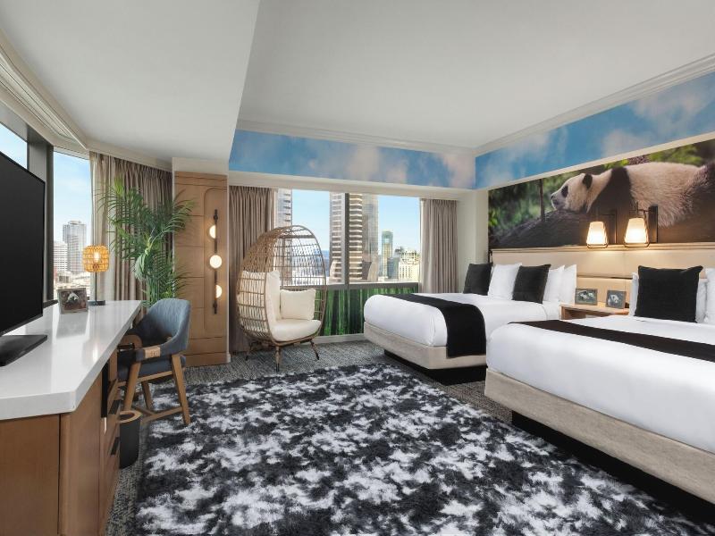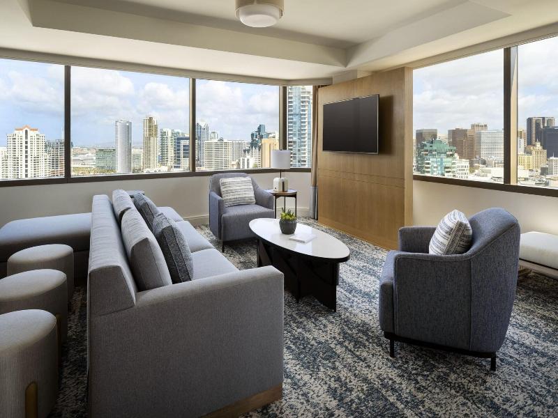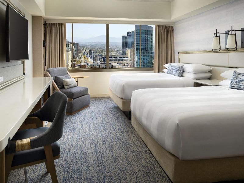 Marriott Marquis San Diego Marina se encuentra en pleno centro de San Diego, a 3 min a pie de Centro de Convenciones de San Diego y a 9 min de Estadio Petco Park. Además, este hotel elegante se encuentra a 1, 7 km de Museo Marítimo USS Midway Museum y a 3, 8 km de Parque cultural Balboa Park. . Relájate en el spa completo, que ofrece masajes, tratamientos corporales y tratamientos faciales. La diversión está asegurada en este alojamiento, que ofrece 2 piscinas al aire libre, una sauna y un gimnasio abierto las 24 horas. Encontrarás también conexión a Internet wifi gratis, servicios de conserjería y una tienda de recuerdos. . Te sentirás como en tu propia casa en cualquiera de las 1360 habitaciones con estación de conexión para iPod y Smart TV. Para los momentos de ocio, tienes un televisor con canales por satélite y conexión a Internet por cable y wifi de pago. El baño privado con bañera o ducha está provisto de artículos de higiene personal gratuitos y secadores de pelo. Entre las comodidades, se incluyen caja fuerte, escritorio y teléfono. . Pásate por Roy's Hawaiian Fusion, uno de los 4 restaurantes de este hotel, cuando quieras comer algo. El alojamiento también dispone de servicio de habitaciones con horario limitado y una cafetería. Relájate con un refresco del bar junto a la piscina o de uno de los 4 bares con salón. Se ofrece un desayuno bufé todos los días de 06:00 a 09:00 con un coste adicional. . Tendrás conexión a Internet por cable gratis, un centro de negocios y check-in exprés a tu disposición. ¿Estás organizando un evento en San Diego? En este hotel tienes a tu disposición 26013 metros cuadrados de espacio con zona para conferencias y 81 salas de reuniones. Hay un aparcamiento sin asistencia (de pago) disponible. . Las distancias se expresan en números redondos.