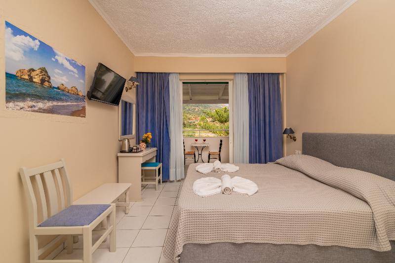 Este hotel está situado en una maravillosa zona tranquila de la isla con vistas a la pintoresca bahía de Porto Zoro. La playa está a 500 m, el centro de Vasilikos a 2 km, mientras que el aeropuerto y Zante, donde se encuentra el puerto principal, están a unos 9 km. El hotel de playa consta de dos edificios de estilo típico y tradicional de la arquitectura isleña. Los edificios están conectados entre sí por un pasillo embaldosado. El hotel está rodeado de olivos y cuenta con un total de 53 habitaciones. Las instalaciones del hotel incluyen un vestíbulo con recepción, caja fuerte, 2 bares (uno interior y otro exterior), así como un comedor. Hay un parque infantil para los más pequeños y también hay servicio de habitaciones disponible. Las habitaciones tienen una decoración sencilla pero estética y a la vez lujosa, con encantadoras vistas al mar y a las montañas circundantes. Todas disponen de baño, teléfono de línea directa, TV vía satélite, aire acondicionado, calefacción central y nevera. En el exterior hay una piscina con piscina infantil. Se pueden reservar estancias con desayuno incluido.