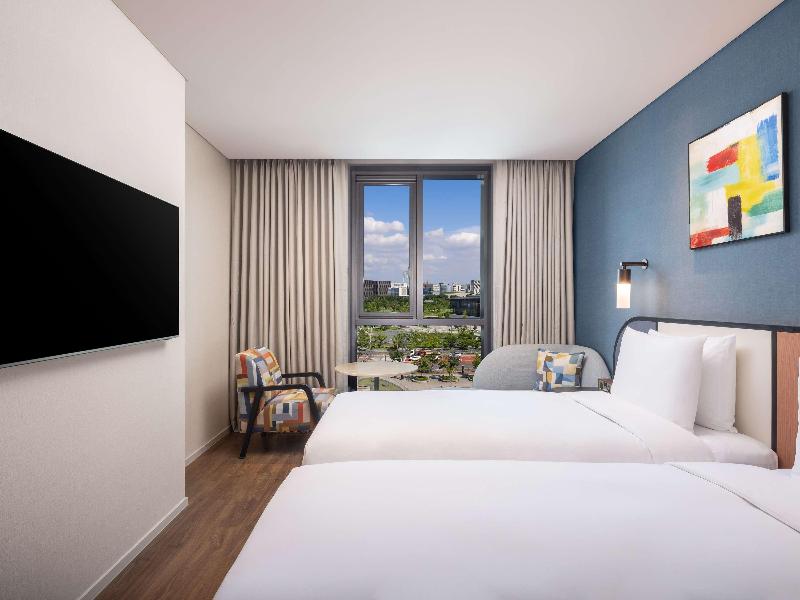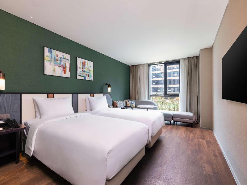 El Mercure Ambassador Seoul Magok ofrece una armoniosa combinación de negocios y placer. Siendo el hotel más grande de Gangseo-gu, cuenta con 400 habitaciones, un restaurante, lounge, bar y salones para banquetes, lo que garantiza una experiencia impecable. Los huéspedes pueden disfrutar de una piscina cubierta con luz natural y un gimnasio. Ubicado en el próspero distrito financiero de Seúl, dentro del complejo COEX Magok, el hotel tiene una ubicación ideal para viajeros de negocios, con excelente acceso al aeropuerto, conexiones de transporte y atracciones culturales como el cercano Botanic Park. Esto convierte al Mercure Ambassador Seoul Magok en la elección perfecta tanto para trabajar como para relajarse.