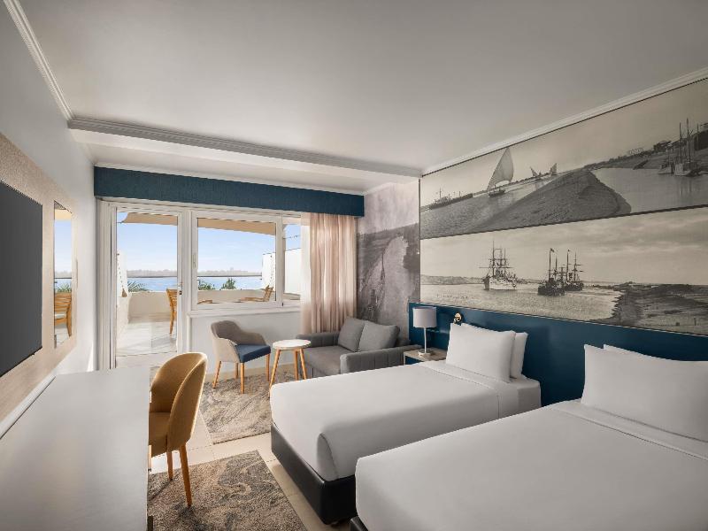 Al llegar al Mercure Ismailia Forsan Island Hotel, lo primero que te dejará sin aliento es el hermoso lago Temsah. Luego verás los verdes jardines repletos de palmeras, la espectacular piscina al aire libre, la playa privada, las pistas de tenis de tierra batida y el encantador personal que te acompañará a tu hermosa habitación con balcón privado y vistas impresionantes del lago y el jardín. Es un hotel diseñado para el placer, ya estés de vacaciones o te tomes un descanso del trabajo.