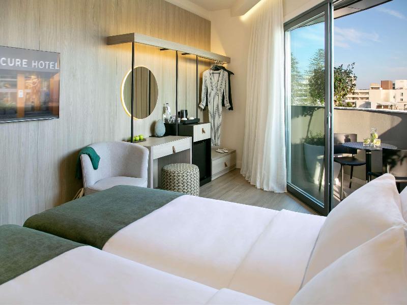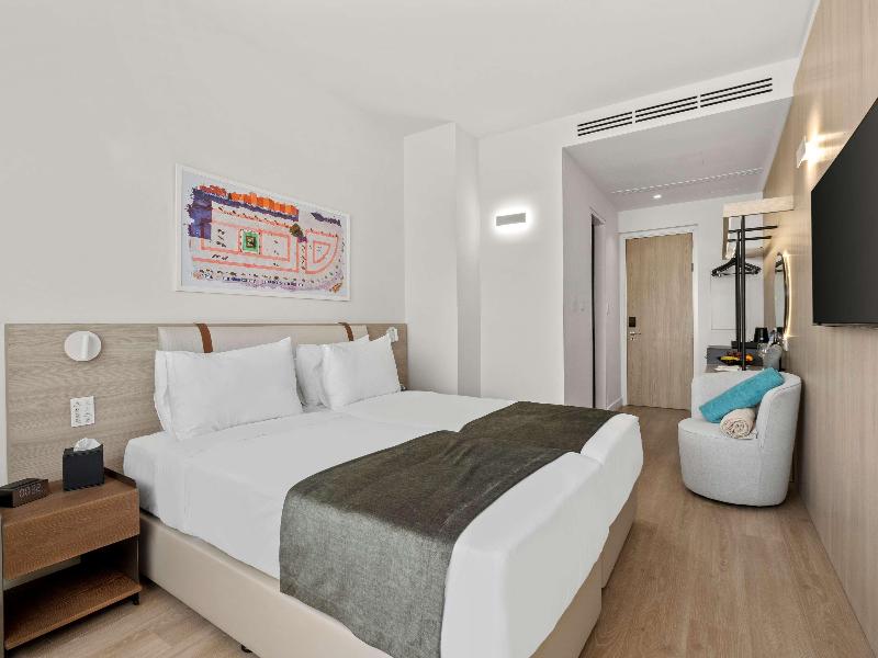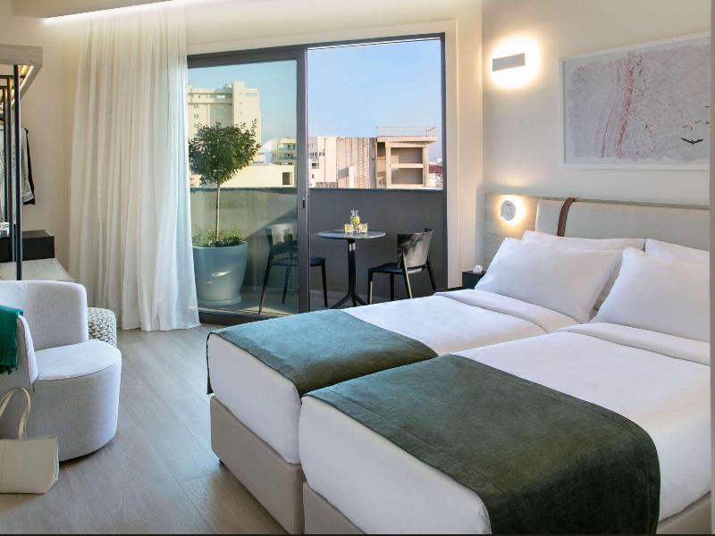 El hotel goza de una ubicación céntrica que realza el encanto del casco antiguo de Larnaca. Esto permite a los huéspedes sumergirse en la cultura local sin dejar de estar cerca de la popular y animada playa de Finikoudes, ofreciendo un equilibrio perfecto entre tradición y modernidad. El hotel de 42 habitaciones ofrece un bar en la azotea con piscina que brinda impresionantes vistas del horizonte de Larnaca. Este espacio sirve como una zona relajante y agradable para que los huéspedes se relajen, tanto de día como de noche.