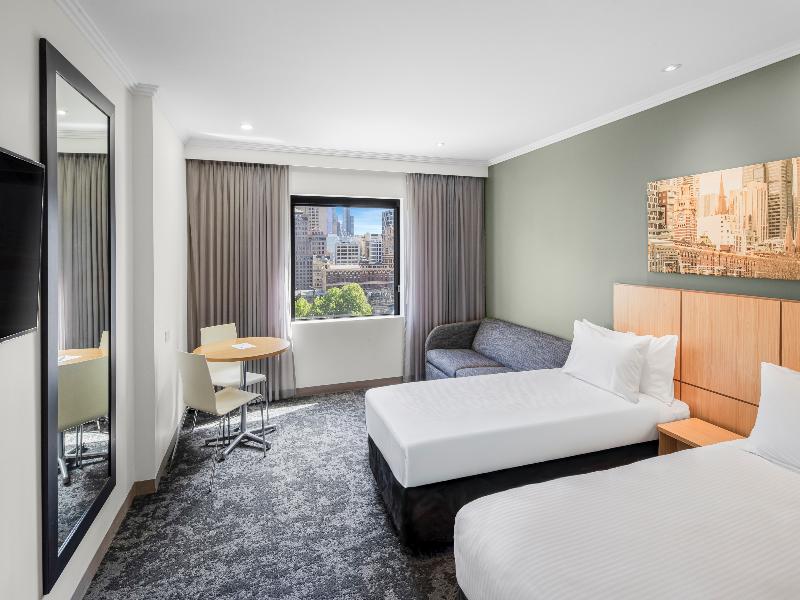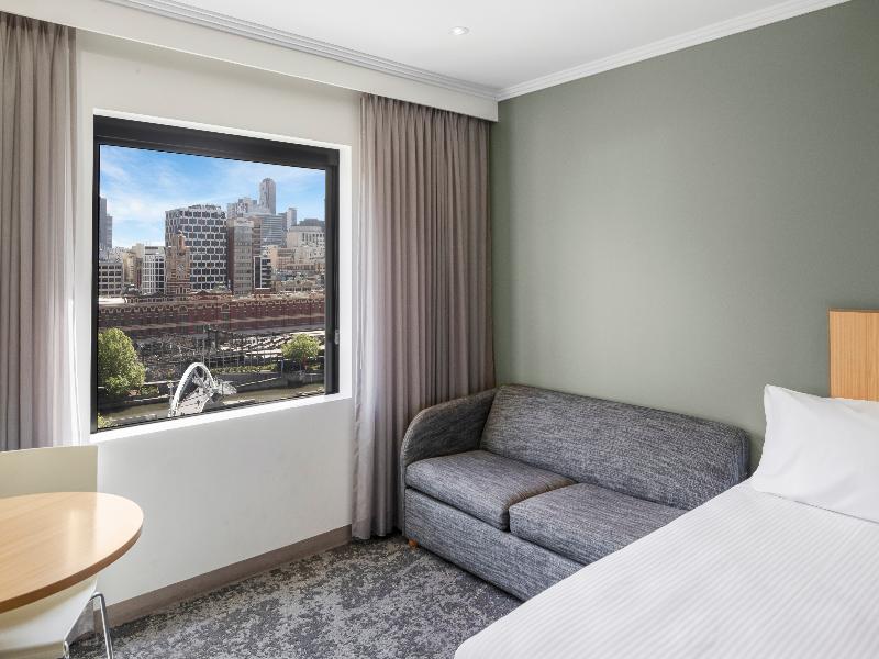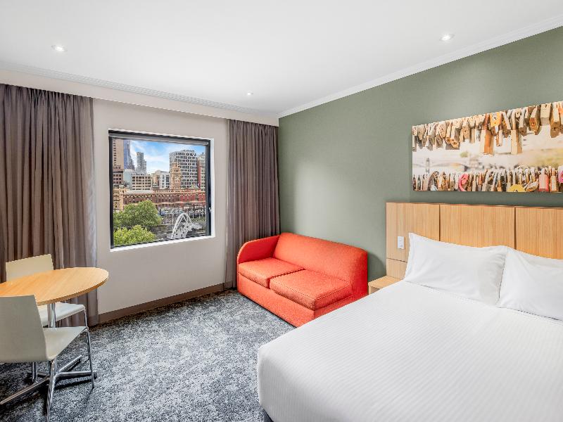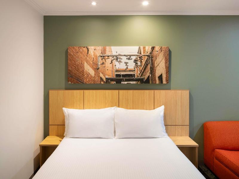 El recién renovado Mercure Melbourne Southbank está idealmente ubicado a solo 601 m del paseo Southbank Promenade en el río Yarra, a 10 minutos a pie del popular Bourke Street Mall, a 15 minutos a pie del Crown Casino y a solo 350 m de la estación Flinders Street. Cada una de las 275 habitaciones está equipada con una cama amplia, cocina americana, smart TV, wifi, caja fuerte, equipo de planchado y aire acondicionado. El hotel cuenta con lavandería para huéspedes, consigna de equipaje, recepción 24 horas, mostrador de registro automático y amplios espacios para reuniones y eventos. El restaurante sirve desayuno buffet y ofrece un menú disponible durante todo el día con opción de servicio a la habitación. Hay aparcamiento de precio fijo disponible en el Wilson Eureka Carpark; los huéspedes pueden presentar su ticket de entrada en recepción a su llegada. Plaza de aparcamiento sujeta a disponibilidad.