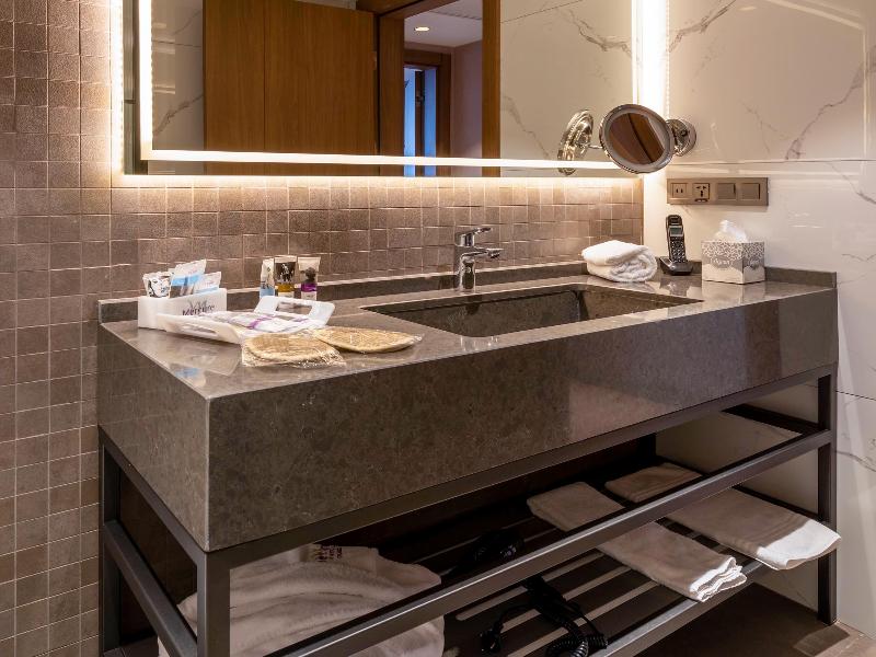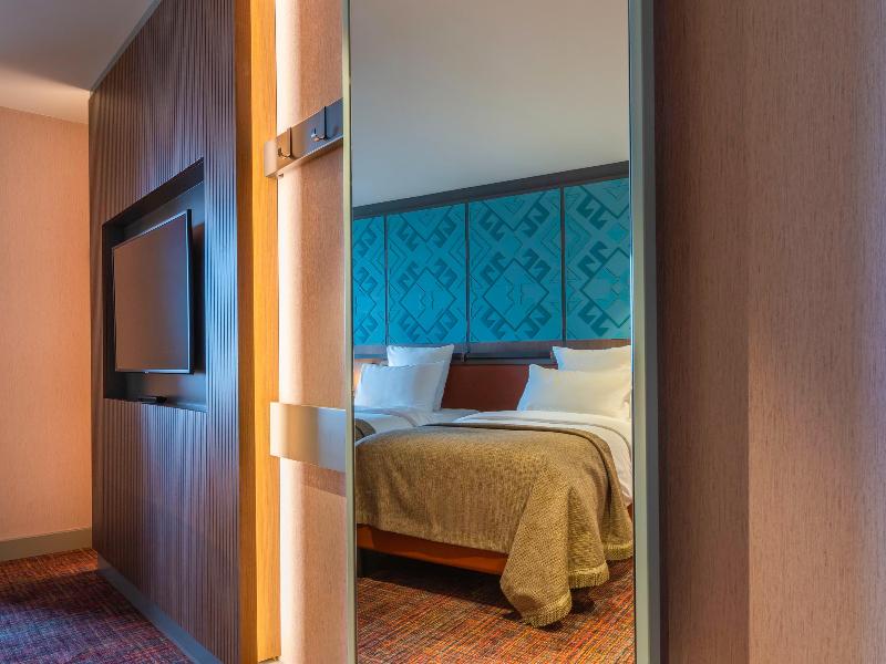 El Mercure Hotel Trabzon goza de una ubicación privilegiada en Yomra Kasustu, en la carretera principal del mar Negro. Está convenientemente situado a menos de 3 km del Aeropuerto Internacional de Trabzon y a tan solo 500 metros del Centro Comercial Cevahir. El hotel ofrece 213 habitaciones de lujo, cada una de 29 metros cuadrados y con espectaculares vistas al mar Negro. Los huéspedes también pueden elegir entre 32 suites elegantemente decoradas, que varían entre 50 y 75 metros cuadrados. El elegante Lobby Lounge, el restaurante M'Cuisine y la terraza ofrecen un ambiente moderno que combina diseño contemporáneo con toques culturales.