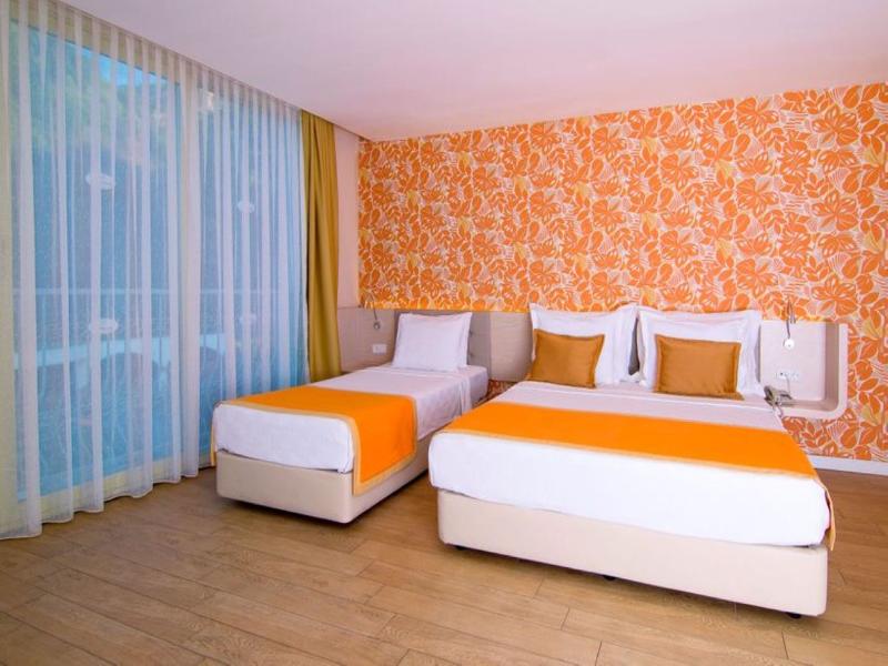 Esta residencia se encuentra en İçmeler, en el corazón del popular destino turístico de Marmaris, a pocos minutos de la playa y a 9 km del centro turístico. En los alrededores del hotel encontrarás zonas comerciales con numerosas tiendas, boutiques, bares y restaurantes. Hay minibuses disponibles, y el trayecto desde el aeropuerto de Dalaman es de unas 2 horas. El hotel, construido en 2001 y renovado en 2014, cuenta con 325 habitaciones distribuidas en 4 plantas y 4 bloques. Dispone de 3 piscinas exteriores y 3 piscinas infantiles con terrazas para tomar el sol, donde toda la familia puede disfrutar de un día de diversión acuática. También hay un acogedor bar y un restaurante con aire acondicionado. Para tu recreo, el hotel ofrece un gimnasio, sauna y baño turco. Todas las habitaciones están decoradas con buen gusto e incluyen baño privado.