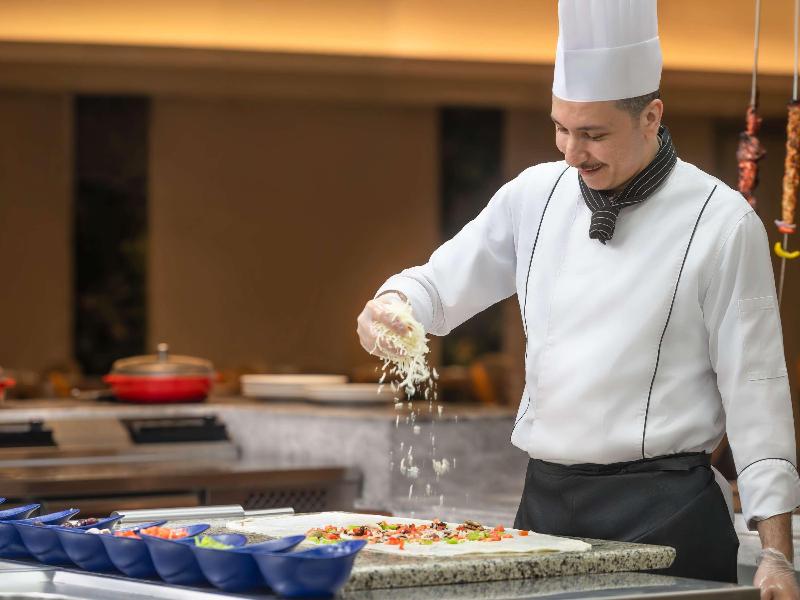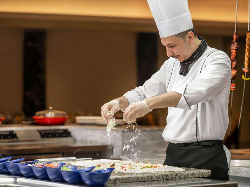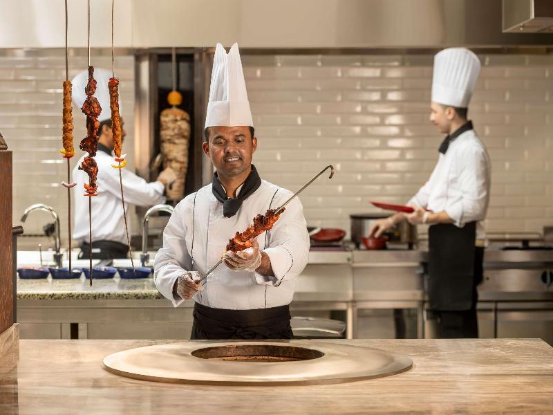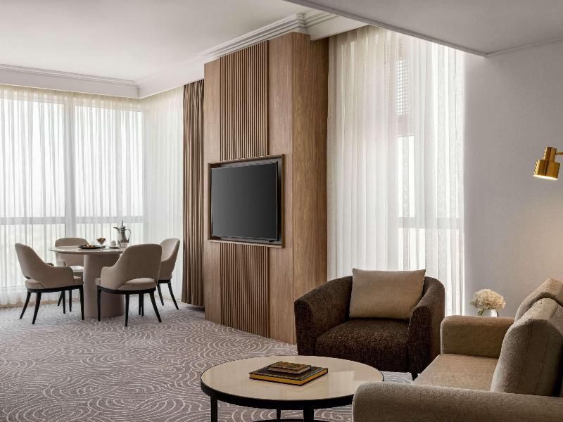 El Mövenpick Hotel & Residences Hajar Tower Makkah forma parte del prestigioso complejo Abraj Al Bait. El hotel está ubicado directamente en Haram Court, frente a la Puerta del Rey Abdul Aziz, y ofrece habitaciones y suites excelentemente equipadas. Disfruta de nuestras cinco opciones gastronómicas versátiles: Al Nasim, el restaurante principal; Al Diwan, un salón de té; Al Naim, salón de té y restaurante; y dos restaurantes buffet, Al Firdaous y el restaurante Hajar, que ofrecen una amplia y creativa variedad de especialidades internacionales y suizas.