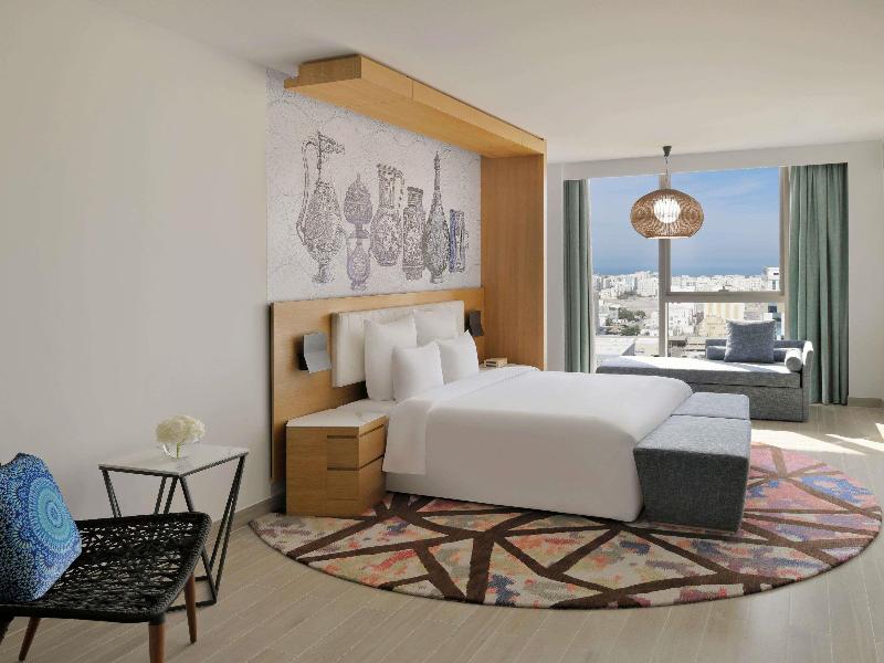 El Mövenpick Hotel & Apartments Ghala Muscat, un hotel de cinco estrellas en Ghala Heights, combina a la perfección el encanto omaní con la reconocida hospitalidad suiza de Mövenpick. A solo 12 minutos del Aeropuerto Internacional de Mascate, ofrece 282 habitaciones, 58 apartamentos con servicios y modernas instalaciones para viajeros de negocios y de placer. Con cuatro opciones gastronómicas y versátiles espacios para eventos, satisface diversas necesidades. Los huéspedes pueden revitalizarse en el NOVE Spa, la piscina infinita en la azotea y el gimnasio con vistas panorámicas para una estancia inolvidable.