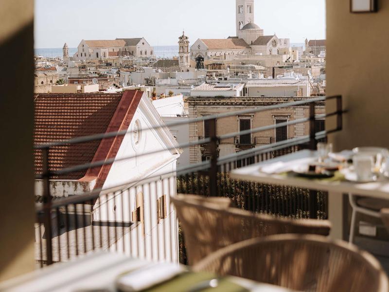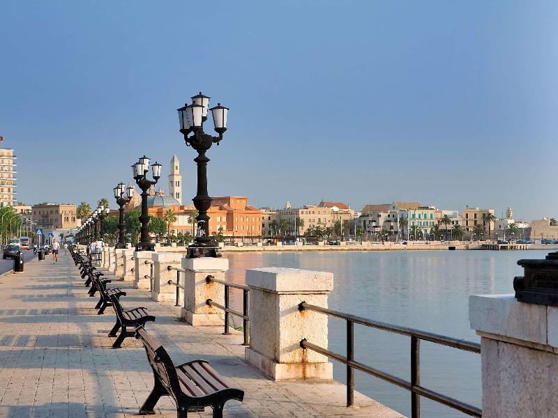 Experimenta la cálida hospitalidad del hotel más antiguo de Bari, el Palace Hotel. Ubicado en el corazón del centro de la ciudad, justo enfrente de la entrada a Bari Vecchia (Casco Antiguo), este hotel ofrece 196 habitaciones con aire acondicionado, cada una equipada con teléfono, minibar, radio, televisión por satélite y secador de pelo. El galardonado desayuno ofrece una amplia selección de productos locales frescos y se adapta a diversas necesidades dietéticas. También puedes disfrutar de impresionantes vistas al mar y al Casco Antiguo desde el restaurante Terrazza Murat, en la séptima planta, que sirve una carta variada de cocina internacional, nacional y local.