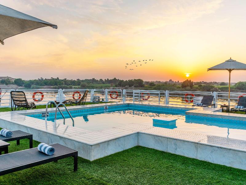 El MS Sunray es el único barco de lujo de 5 estrellas de marca que opera el jueves desde Luxor y el lunes desde Asuán y cuenta con un diseño elegante, con una enorme entrada y un vestíbulo con techo de gran altura. Zonas comunes amplias, camarotes con ventanal con apertura parcial, terraza con zona de ocio y salas de lectura y de juegos. 60 camarotes exteriores, 2 camarotes individuales, 2 suites Junior y 2 suites Senior. Camarotes con baño con bañera, minibar, secador y Smart TV LED con satélite marino.