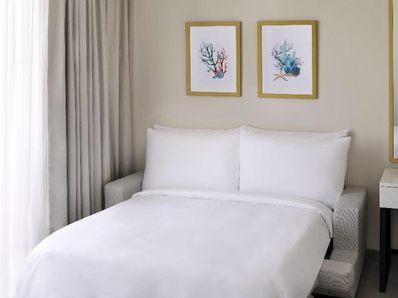Descubre Mövenpick Resort Al Marjan Island, un resort de 5 estrellas en Ras Al Khaimah con 300 metros de playa. Con 418 elegantes habitaciones y suites que ofrecen lujo y confort, además de impresionantes vistas al mar, te brindamos una experiencia inigualable. Disfruta de seis bares y restaurantes especializados, tres piscinas al aire libre, un centro de bienestar, deportes acuáticos, un club infantil, salas de juegos, una zona para adolescentes y minigolf. Ya sea junto al mar o en tierra firme, sumérgete en un ambiente lleno de experiencias.
