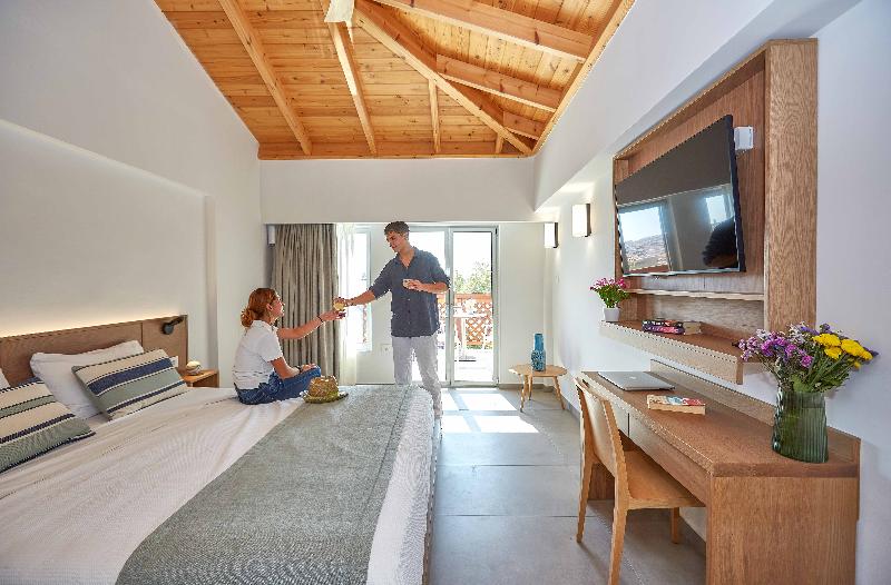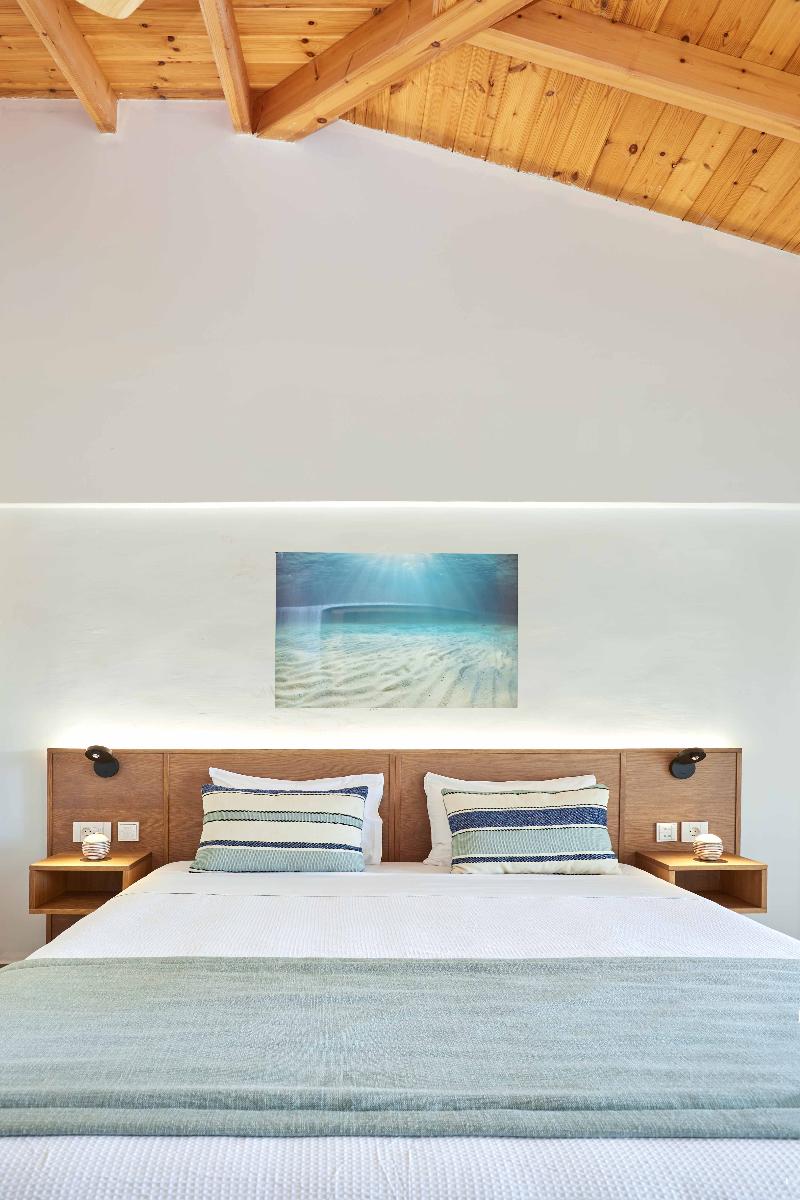 Skiathos Mystery es un complejo de lujo con 10 suites de ensueño y 13 habitaciones dobles, diseñadas para mimar a sus huéspedes. Todo es impecable y reluciente, seguro que impresionará incluso al viajero más exigente. Las suites y habitaciones se distribuyen alrededor de dos piscinas, lo que garantiza vistas relajantes y tranquilas. Las habitaciones dobles son completamente nuevas y cuentan con aire acondicionado, albornoces, lujosos artículos de tocador, lavabos de Corian, ropa de cama de algodón, cerraduras electrónicas, acceso gratuito a internet de alta velocidad (incluido wifi), secador de pelo, caja fuerte, espejo de aumento, minibar, colchones de alta calidad, toallas de piscina, balcones privados amueblados, duchas de efecto lluvia, enchufes para maquinillas de afeitar, televisores inteligentes, zapatillas, ventanas insonorizadas y escritorio.
