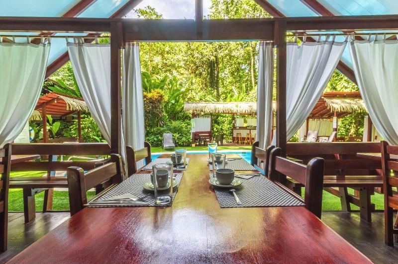 Este encantador lodge disfruta de un entorno idílico en Puerto Viejo, en medio de belleza y esplendor natural. El lodge se encuentra cerca de varias atracciones de la zona, como Black Sand Beach, Refugio Nacional de Vida Silvestre Gandoca Manzanillo y Cahuita National Park. Este maravilloso lodge ofrece a sus huéspedes el escenario ideal para escapar del bullicio de la vida diaria. Este estupendo lodge seduce a sus huéspedes con la promesa de una paz y serenidad inigualables. Las habitaciones están exquisitamente diseñadas con maderas nobles, un mobiliario elegante y ropa de cama de lujo. El lodge pone a disposición de sus huéspedes una serie de instalaciones excepcionales que garantizan una estancia realmente agradable.