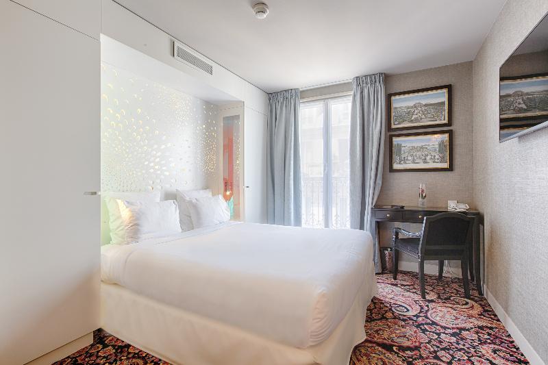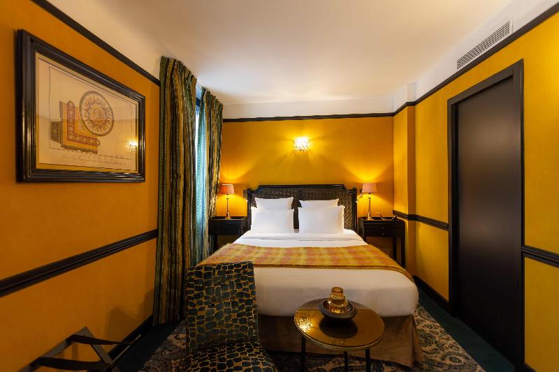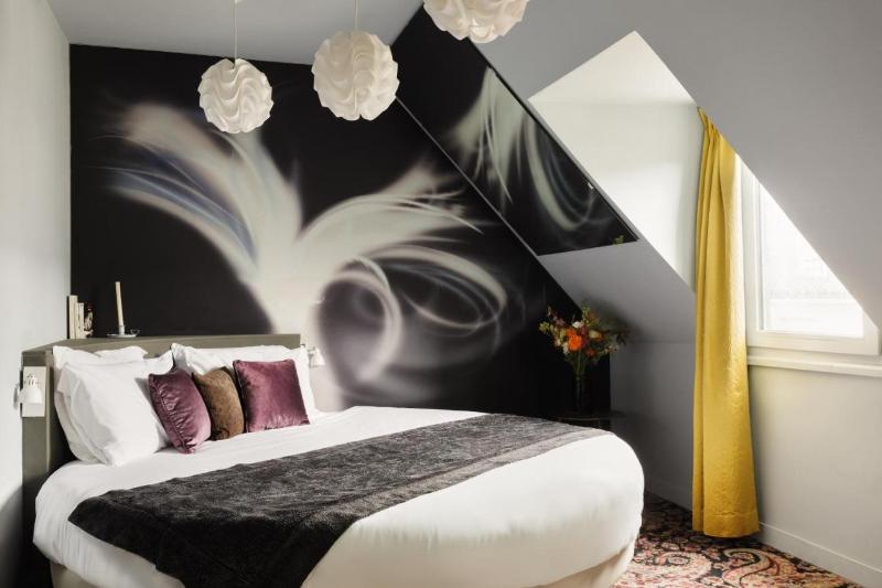 Enclavado en el elegante distrito de Haut-Marais, cerca de la vibrante République, este hotel rezuma un ambiente único que combina exclusividad, romanticismo y arte. El Hôtel Angely ofrece una interpretación moderna del estilo boudoir chic, irradiando un encanto sensual y juguetón en sus 22 habitaciones. Toques de morado y fucsia complementan el terciopelo texturizado, los azulejos brillantes y los sofás con estampado de cocodrilo. Motivos de diamantes adornan las paredes que refractan la luz, acentuadas por reluciente plexiglás y esculturas de aluminio iluminadas.