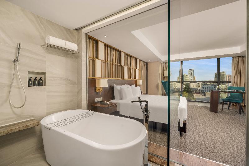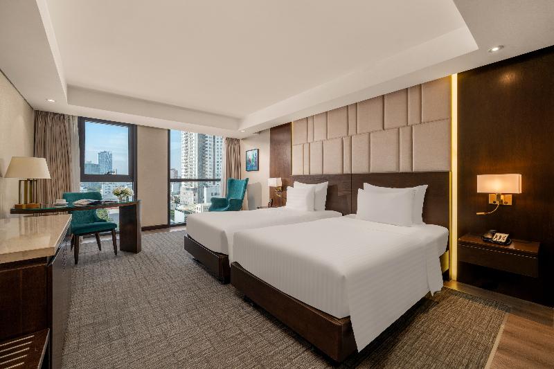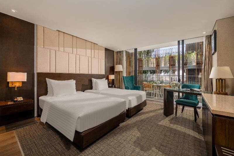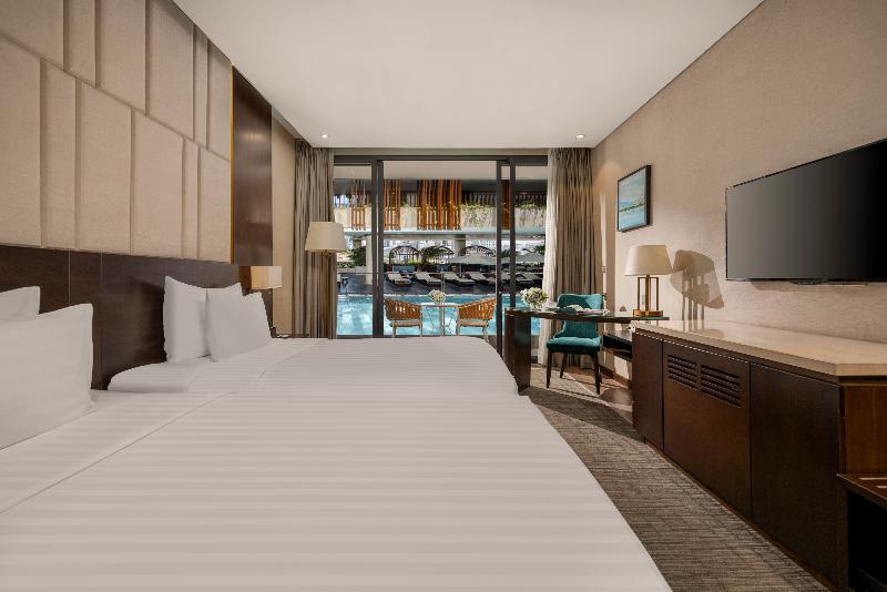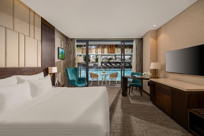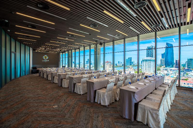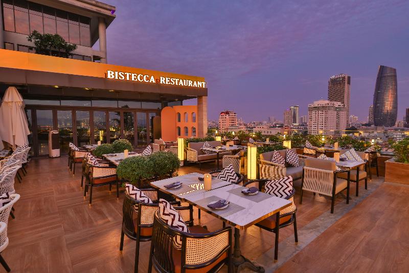 El New Orient Hotel de 4 estrellas, situado en la orilla oeste del río Han, en el centro de Da Nang, ofrece excepcionales vistas panorámicas de la ciudad, las montañas circundantes y el río desde sus 10 plantas. Este emblemático hotel es un lugar ideal para bodas y eventos, con una excelente gastronomía y un servicio profesional. Ubicado cerca del vibrante Phuong Dong Bar en la calle Dong Da, el New Orient Hotel ofrece un cómodo acceso al Aeropuerto Internacional de Da Nang y a la estación de tren, ambos a pocos kilómetros. La arquitectura de piedra arenisca del hotel y el exuberante paisaje tropical crean un oasis de tranquilidad, mientras que sus habitaciones y restaurantes ofrecen vistas panorámicas de la ciudad, las montañas, el río y el puente Thuan Phuoc. El hotel también está perfectamente ubicado para explorar lugares declarados Patrimonio de la Humanidad por la UNESCO como Hoi An y My Son Sanctuary, así como varios campos de golf de primera clase.