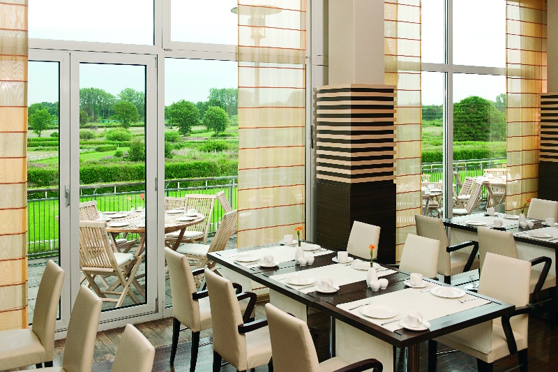 El hotel, construido en el año 2000 y restaurado en el 2005, dispone de 172 habitaciones, repartidas en 5 plantas y cuenta con vestíbulo con ascensor, bar y restaurante, en los que se sirven diferentes especialidades culinarias. Lo más especial de este hotel es su amplia terraza, en la cual los huéspedes podrán disfrutar de desayuno en verano. Desde el restaurante y algunas de las habitaciones se pueden observar pruebas como el Derby Alemán. Para relajarse los huéspedes pueden pasar por la zona de spa, dotada de sauna, solárium y zona de gimnasio.