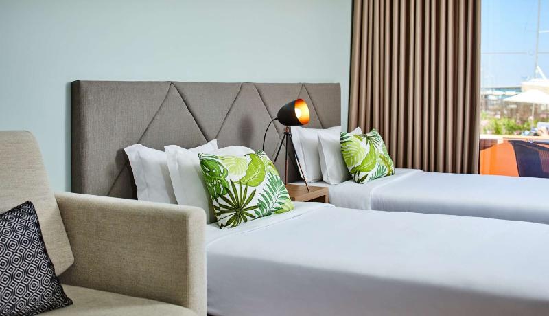 Sumérgete en el relajado estilo de vida playero portugués en Portimão, ciudad portuaria del Algarve. El hotel de cuatro estrellas NH Marina Portimão Resort, antes conocido como Tivoli Marina Portimão Algarve Resort, domina el paseo marítimo, con sus lujosos yates y barcos de pesca que ofrecen un escenario impresionante. Está al lado de la playa, tiendas, restaurantes y también opciones de entretenimiento familiar. Además, los huéspedes pueden disfrutar de la comodidad del aparcamiento en las instalaciones. El hotel cuenta con 196 apartamentos con aire acondicionado distribuidos en tres edificios, que ofrecen encantadoras vistas al puerto deportivo o a la piscina. Las habitaciones disponen de balcón o terraza, así como zona de cocina y comedor, con comodidades modernas que incluyen una cafetera Nespresso y televisión por cable. Comienza tu día de la mejor manera con un desayuno buffet que incluye especialidades locales como higos secos y almendras, y huevos recién hechos en nuestra estación de cocina en vivo. El restaurante también está abierto para el almuerzo y la cena, con un delicioso menú de mariscos frescos y cocina portuguesa. Si te apetece una bebida relajante, puedes disfrutar de una copa de vino o un cóctel refrescante en el bar principal del hotel o en el bar junto a la piscina durante el verano. Tenemos tres piscinas al aire libre, incluyendo una gran piscina principal y una para niños. También hay un parque infantil y un gimnasio para aquellos que quieran hacer ejercicio durante su estancia.