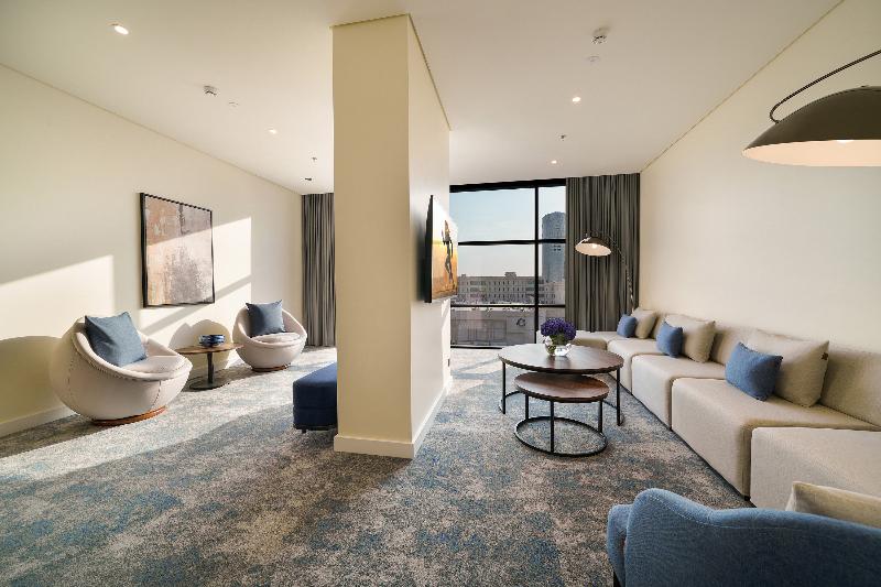 Nova M Edge By Rotana cuenta con un total de 103 unidades. Nova M Hotel - Edge by Rotana goza de una ubicación céntrica en la famosa calle Al Olaya, frente a varios distritos comerciales y de negocios. Situado a tan solo 27 minutos en coche del Aeropuerto Internacional King Khalid y a solo 2 minutos (180 metros) a pie de la estación de metro Al Wurud2, el hotel ofrece una ubicación privilegiada para todo tipo de viajeros. El hotel cuenta con 103 habitaciones y suites meticulosamente diseñadas que combinan la estética contemporánea con la funcionalidad. Cada habitación está equipada con comodidades modernas, lo que proporciona un refugio confortable tanto para viajeros de negocios como de placer. El hotel ofrece una variedad de opciones gastronómicas para todos los gustos. Misk All-Day Dining, un restaurante vibrante, da vida a los 'Sabores del mundo' con un bufé internacional, mientras que Sola Lobby Café ofrece una combinación de café Starbucks, tés y aperitivos.