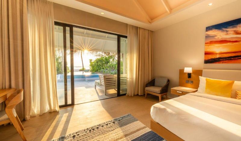 Nova Maldives, un nuevo y brillante complejo turístico, se encuentra en el atolón Ari Sur, un lugar privilegiado para el buceo en las Maldivas, famoso por sus mantarrayas y tiburones ballena. Un pintoresco viaje en hidroavión de 25 minutos desde el aeropuerto, seguido de un breve traslado en lancha rápida, te lleva a este moderno complejo con todo incluido. Sus 76 villas y cinco restaurantes ofrecen una variedad de experiencias, ya sea que busques aventuras submarinas o relajación bajo las palmeras.