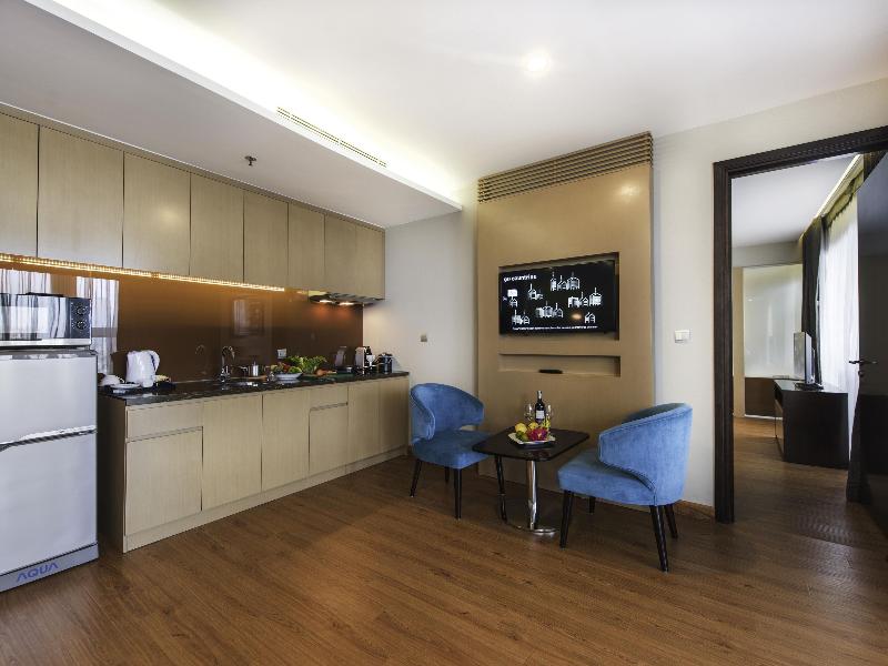 Nuestro hotel cuenta con unos amplios y ergonómicos estudios y apartamentos con 1, 2 o 3 dormitorios, cocina americana, WIFI gratuito, televisor IP internacional, restaurante bufé internacional, Gourmet Bar abierto todo el día, el bar Library en la planta ático, terraza con zona de recreo, gimnasio 24 horas, piscina al aire libre, hammam, sauna, servicio de lavandería y salas de reuniones. Para viajes de placer o de negocios, este moderno hotel Novotel ofrece un espacio adaptado a tus necesidades.