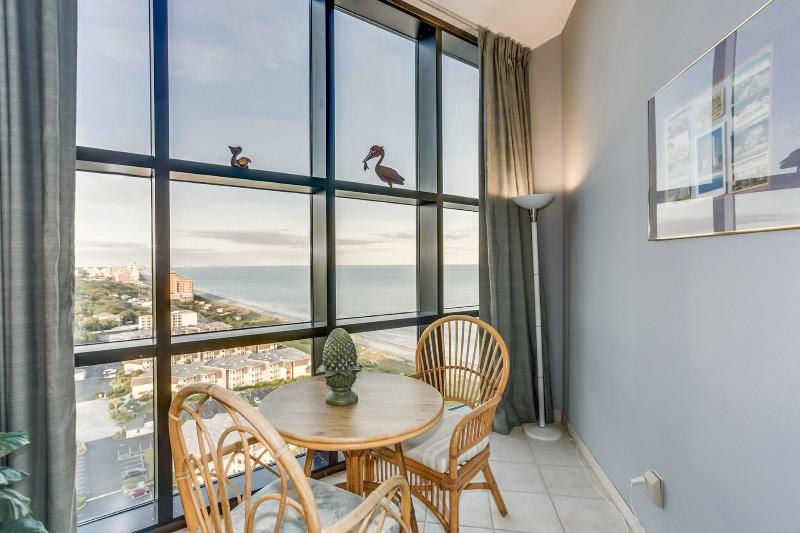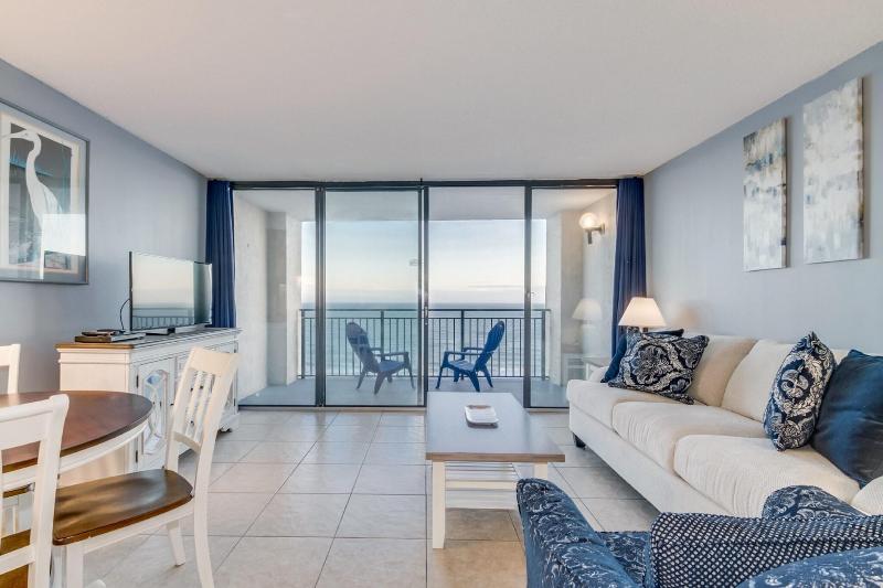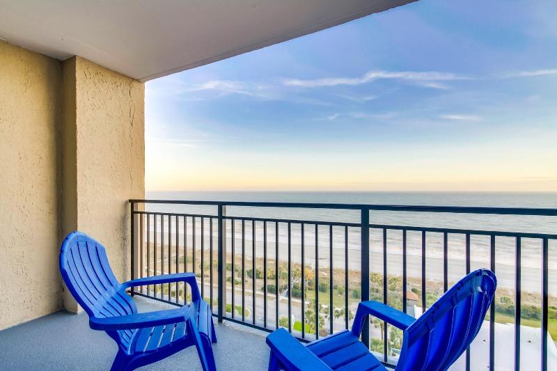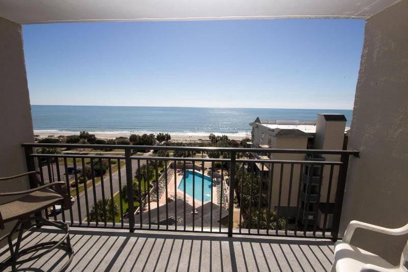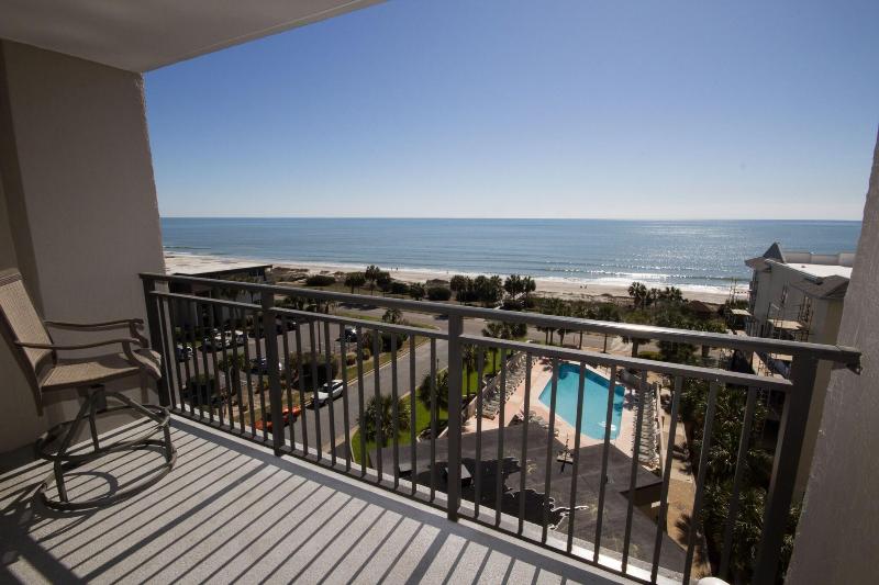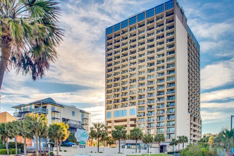 Ocean Forest Plaza está ubicado frente al mar en la exclusiva sección Ocean Forest de Myrtle Beach. Lejos del bullicio, pero cerca de todas las atracciones de la zona, Ocean Forest Plaza es un destino perfecto para todas las edades. El resort ofrece suites de un dormitorio, la combinación de alojamiento de lujo, una ubicación excepcional y una excelente relación calidad-precio para tus vacaciones. El vestíbulo, decorado con azulejos, recibe a los huéspedes con una decoración mediterránea, sillas de hierro forjado y muebles de ratán. La piscina al aire libre está rodeada de tumbonas a rayas verdes y blancas, y la piscina cubierta incluye un jacuzzi.