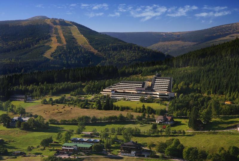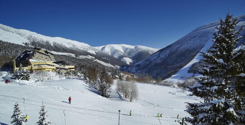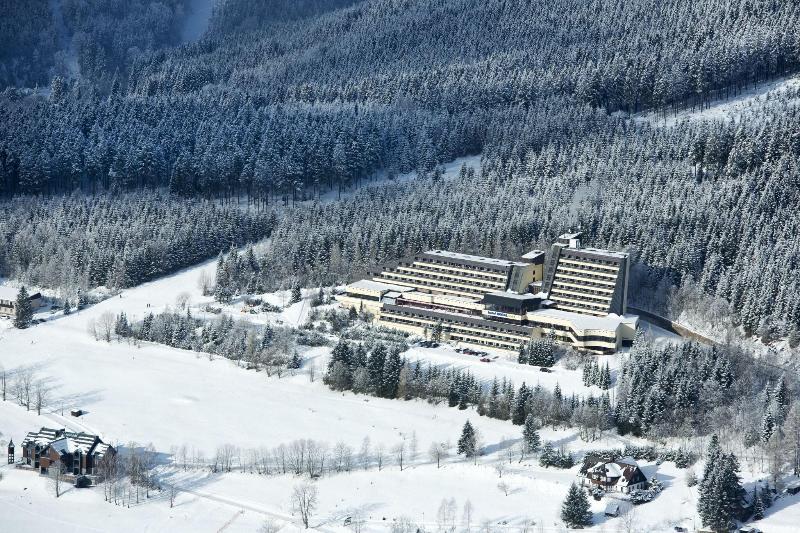Disfruta de una estancia relajante en el OREA Resort Horal Špindlerův Mlýn, ubicado en el corazón del Parque Nacional Krkonoše, a pocos pasos de la estación de esquí Spindleruv Mlyn. Relájate en el spa con todos los servicios, que incluye masajes, jacuzzi y sauna. El hotel ofrece wifi gratis, sala de juegos electrónicos, guardaesquís y un restaurante con servicio a la habitación (con horario limitado). También dispone de bar, salón y desayuno bufé gratuito (de 7:00 a 10:00). Para viajeros de negocios, hay un centro de negocios, salas de reuniones y espacio para conferencias. El hotel ofrece servicio de traslado de ida y vuelta al aeropuerto (con cargo) y aparcamiento. Las 162 habitaciones cuentan con minibar, televisores LCD, baño privado con ducha, secador de pelo y albornoces. También incluyen caja fuerte y escritorio para tu comodidad.