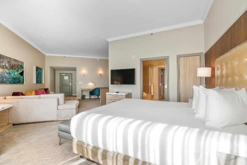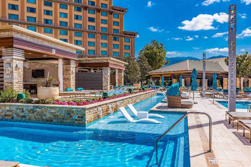 Disfruta de la emoción del casino en Pala Casino Spa and Resort, un hotel de estilo toscano que ofrece una piscina exterior de temporada, tiendas de regalos y un práctico supermercado. Saborea refrescos junto a la piscina y come en los restaurantes del hotel. Las 507 habitaciones con aire acondicionado disponen de camas con colchones pillow-top y edredones de plumas, sábanas de algodón egipcio y baños privados con bañeras profundas. Las comodidades incluyen escritorios, salas de estar independientes y cunas gratuitas. El hotel también ofrece check-out exprés, recepción 24 horas y personal multilingüe.