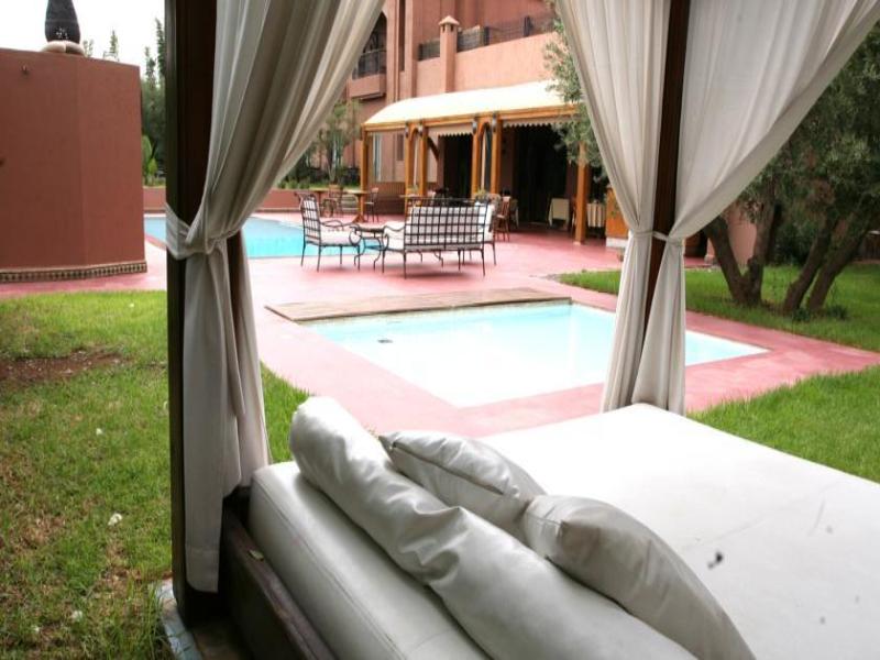El palais Jena Hotel & Spa, situado a menos de 8 km de la medina de Marrakech, ofrece un solárium, una zona de piscina al aire libre y un salón compartido. Ubicado en un edificio de estilo art déco, tiene vistas a las montañas del Atlas. Cada mañana se sirve un desayuno continental en el comedor. El restaurante junto a la piscina del hotel tienta a los huéspedes con la cocina internacional. El bar de cócteles es ideal para tomar una copa. Hay una variedad de restaurantes como La Villa Oscar que ofrecen especialidades marroquíes a solo 100 metros de distancia.Hay una estación de tren muy cerca del hotel.Este hotel cuenta con una piscina con solárium. Los huéspedes pueden hacer ejercicio en un gimnasio durante su estancia.