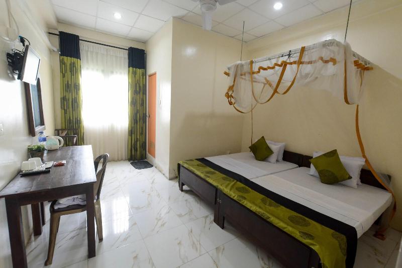 Si te hospedas en Pavana Resort en Embilipitiya, estarás a 17, 8 km de Udawalawe National Park y a 46, 5 km de Tangalle Beach. Este hotel se encuentra a 15, 2 km del Udawalawa Elephant Orphanage y a 16, 7 km de Udawalawe Reservoir. No dejes de disfrutar de las instalaciones recreativas, que incluyen una piscina al aire libre y bicicletas de alquiler. Tendrás a tu disposición recepción 24 horas y consigna de equipaje. Hay un aparcamiento sin asistencia gratuito disponible en las instalaciones. Disfruta de una comida en el restaurante, o bien, aprovecha el servicio de habitaciones las 24 horas del hotel. Todos los días se sirve un desayuno gratuito preparado al gusto de 6:00 a 10:00. Alójate en una de las 12 habitaciones con televisor de pantalla plana. Mantén el contacto con los tuyos gracias a la conexión a Internet wifi gratis. El baño privado con ducha está provisto de artículos de higiene personal gratuitos y zapatillas. Entre las comodidades, se incluyen agua embotellada gratuita y ventilador de techo, además de un servicio de limpieza disponible todos los días.