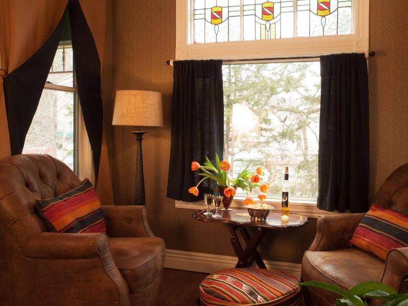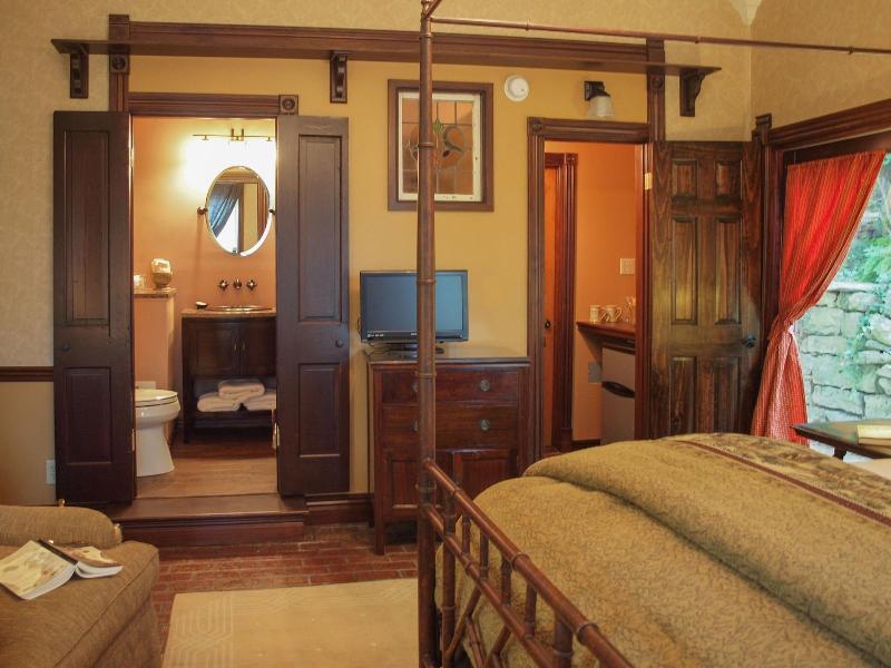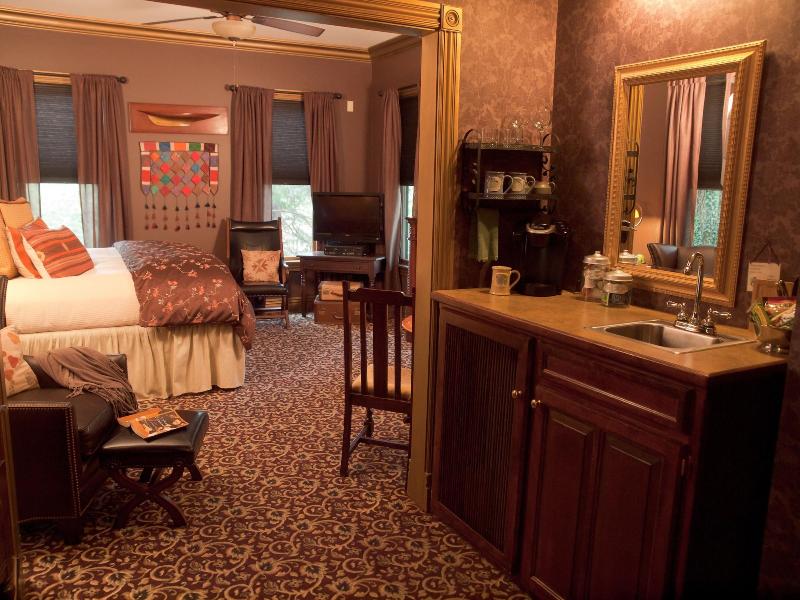 Alójese en el Peabody House Historic Inn and Cottages en Eureka Springs (Distrito Histórico de Eureka Springs) y estará a 5 minutos a pie del parque Basin Spring y del auditorio municipal de Eureka Springs. Este bed and breakfast se encuentra a 21, 5 km del lago Beaver y a 22, 9 km del lago Table Rock. Disfrute de las vistas desde la terraza y el jardín y aproveche servicios como wifi gratis. Hay estacionamiento sin cargo disponible en las instalaciones. Se incluye un desayuno continental gratuito. Siéntase como en casa en una de las 4 habitaciones con aire acondicionado, kitchenette con refrigerador y microondas. Las habitaciones tienen balcones o patios privados. Televisores de pantalla plana con canales por cable para su entretenimiento y wifi gratis para mantenerse conectado. También incluyen cafeteras y planchas/tablas de planchar. Se proporciona servicio de limpieza todos los días.