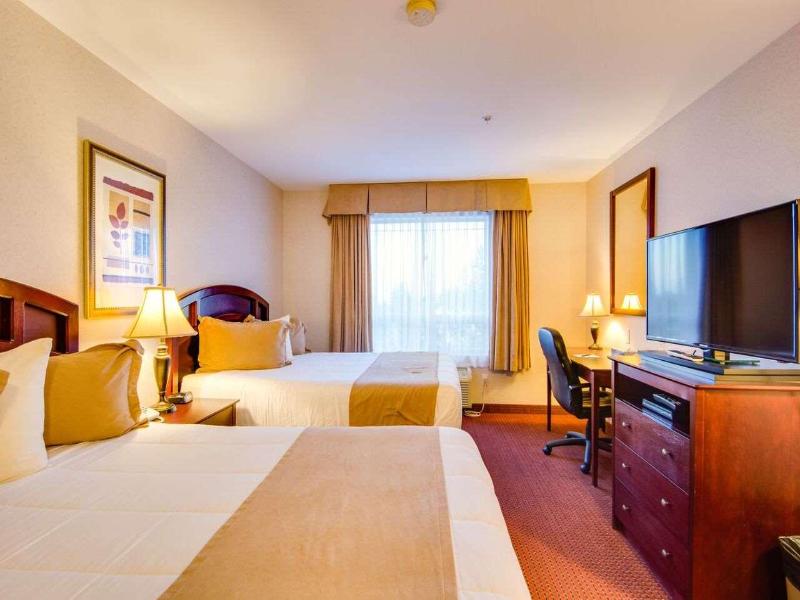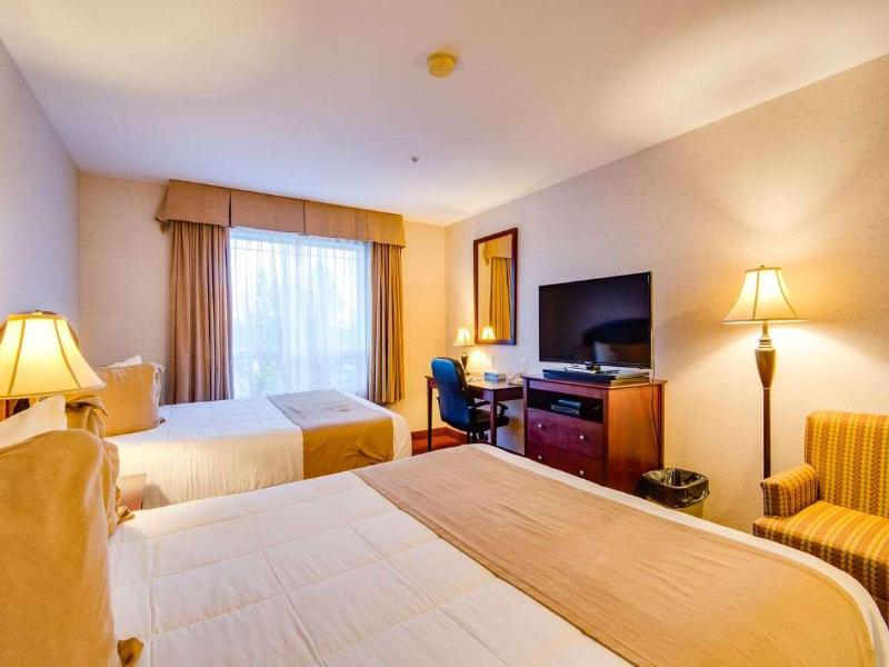 Situado junto a la autopista 2 en High Prairie, este moderno hotel ofrece una ubicación ideal tanto para viajeros de negocios como de placer. Los huéspedes tienen acceso a una variedad de servicios, incluyendo una piscina cubierta con tobogán y jacuzzi, además de un gimnasio para el entrenamiento diario. El hotel admite mascotas y cuenta con un restaurante y bar, The Vine, que sirve cocina canadiense. El alojamiento varía desde habitaciones estándar hasta suites familiares y ejecutivas. Todas las habitaciones están equipadas con wifi gratuito, aire acondicionado, microondas y mininevera. Algunas suites ofrecen comodidades mejoradas, como cocinas completas y chimenea eléctrica para mayor confort. Para los que deseen visitar lugares de interés locales, el High Prairie and District Museum se encuentra a 550 metros del hotel.