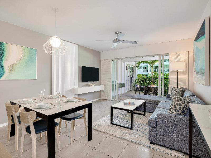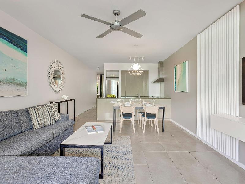 Con una ubicación ideal a pocos pasos del pueblo de Port Douglas, Peppers Beach Club ofrece alojamiento perfecto para parejas y familias. Disfruta de tus próximas vacaciones en la Gran Barrera de Coral y la Selva Tropical de Daintree alojándote en una de las suites de una, dos o tres habitaciones bellamente decoradas o en nuestro espacioso penthouse. Exuberantes jardines rodean tu alojamiento, creando un ambiente tranquilo en todo el complejo. Para un toque de lujo adicional, algunas habitaciones ofrecen acceso directo a la piscina tipo laguna tropical, bordeada de palmeras, desde su propia terraza. Las comodidades incluyen wifi gratuito, aire acondicionado, una elegante cocina con electrodomésticos modernos y un amplio balcón para relajarte y disfrutar del ambiente tropical. El servicio de limpieza diario te permite desconectar por completo, dejándonos a nosotros las preocupaciones cotidianas. El ocio es fundamental en Peppers Beach Club, con una gran piscina tipo laguna para refrescarse. Algunas habitaciones cuentan con terrazas privadas donde puedes descansar al borde de la piscina con una bebida en la mano mientras disfrutas del sol del norte tropical de Queensland. Si el ejercicio es esencial para ti, nuestro gimnasio te permite mantenerte en forma, y también ofrecemos alquiler de bicicletas para que explores las atracciones locales a tu propio ritmo. Para todas tus actividades y excursiones, visita el mostrador de información turística dentro del complejo y cuéntanos tus planes. Ya sea que planees descubrir la Gran Barrera de Coral, Patrimonio de la Humanidad, explorar la Selva Tropical de Daintree o subir al Kuranda Skyrail, hay infinidad de experiencias para disfrutar. Experimenta un paseo en globo aerostático, un viaje en helicóptero o hidroavión, prueba el paracaidismo, el snorkel o el buceo, o simplemente extiende una toalla en Four Mile Beach y observa las olas romper en la orilla.