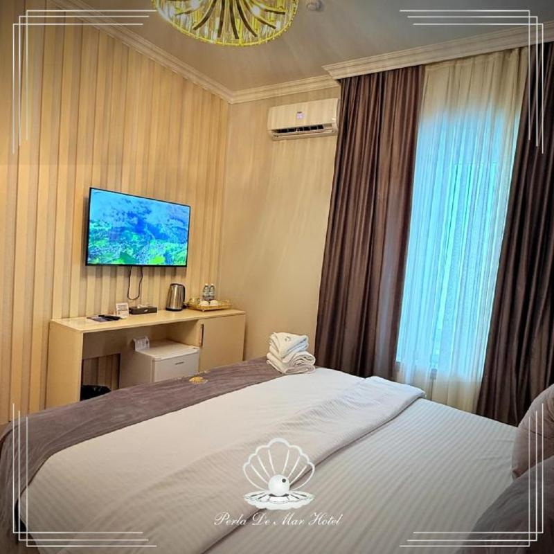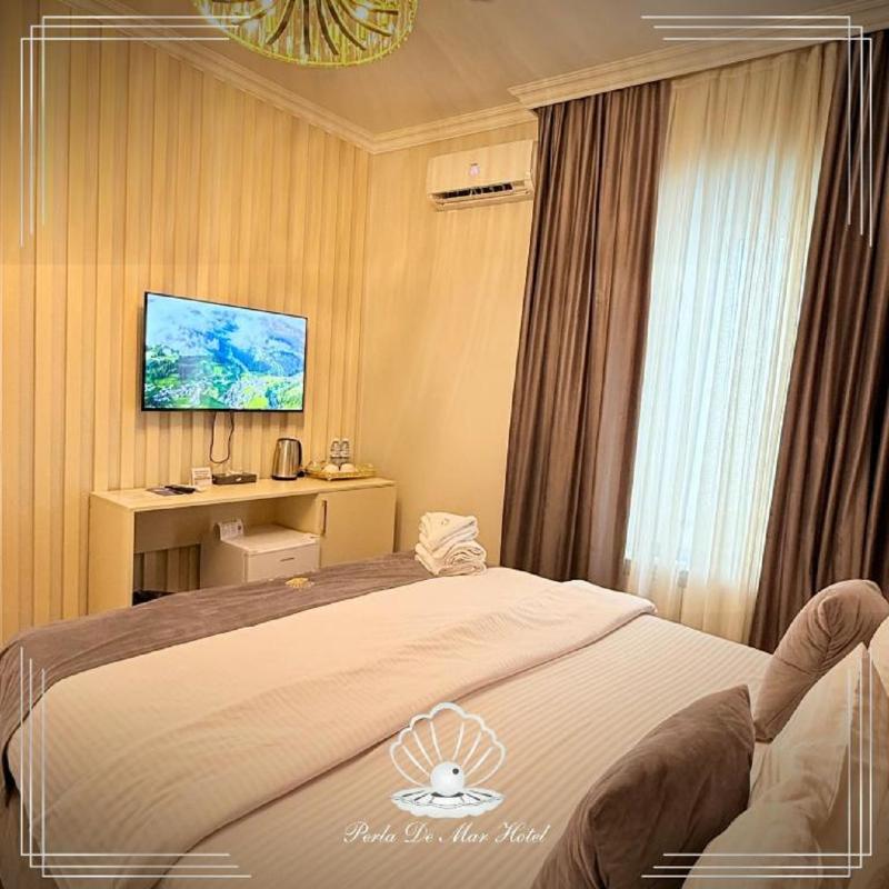 Alojamiento confortable: El Hotel Perla De Mar en Bakú ofrece habitaciones familiares con aire acondicionado, baños privados y balcones. Cada habitación incluye un escritorio, minibar y wifi gratis en toda la propiedad. Experiencia gastronómica: El restaurante tradicional sirve cocina local con opciones de desayuno continental, americano, vegetariano, vegano, halal y kosher. Los huéspedes también pueden disfrutar de una variedad de platos en un ambiente acogedor. Ubicación conveniente: Ubicado a 25 km del Aeropuerto Internacional Heydar Aliyev, el hotel está a un corto paseo del Palacio de los Shirvanshahs y la Torre de la Doncella. Las atracciones cercanas incluyen el Museo de Alfombras de Azerbaiyán y la Plaza de las Fuentes. Servicios para huéspedes: El hotel ofrece recepción 24 horas, servicio de conserjería y transporte de pago. Los servicios adicionales incluyen un minimercado, área de juegos al aire libre y estacionamiento de pago en el lugar.