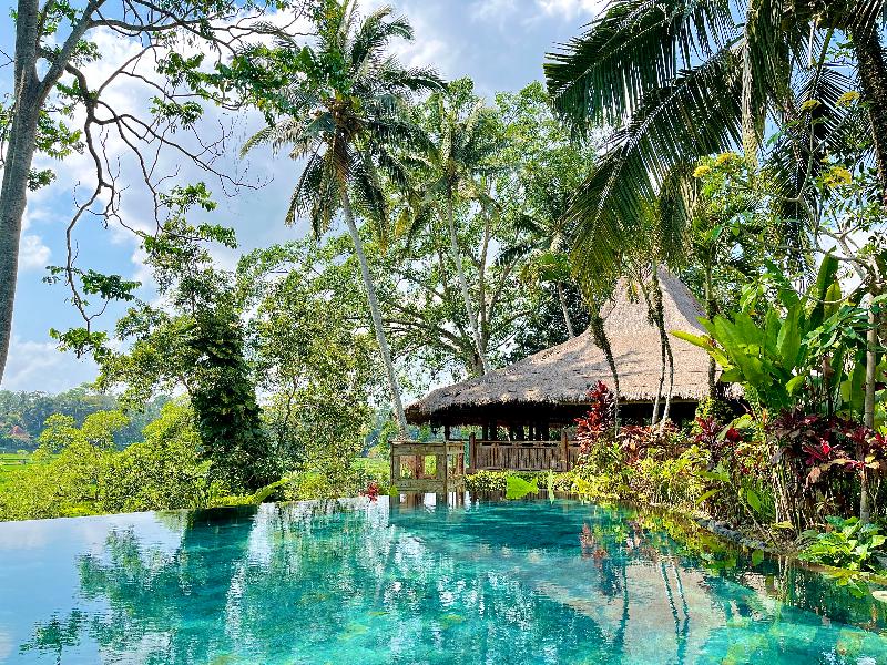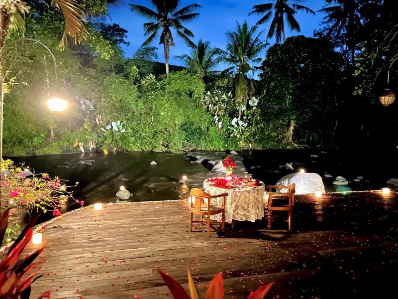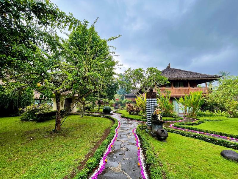 La Permata Ayung Private Estate ofrece alojamiento exclusivo para un máximo de 20 huéspedes. La finca comprende una serie de singulares y antiguas estructuras javanesas, cada una con su propio carácter distintivo. El aire acondicionado y los ventiladores de techo proporcionan confort, mientras que las terrazas abiertas permiten que las refrescantes brisas de los arrozales fluyan a través de ellas. El relajante sonido del río Ayung crea una atmósfera tranquila. Ubicada en 5 hectáreas de un exuberante valle tropical, la finca goza de impresionantes vistas a los vibrantes campos de arroz verdes.