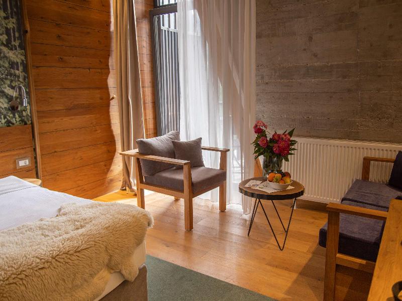 Este fantástico hotel es perfecto para los amantes de la naturaleza. Está rodeado de un inmenso bosque de pinos y montañas donde el relax y la desconexión están garantizados. El hotel ofrece un total de 24 habitaciones y suites. Cada habitación tiene carácter propio y todas ellas cuentan con diversos servicios como son baño privado con secador, televisión, conexión a Internet mediante WIFI y caja fuerte. Podrás relajarte en el spa el cual incluye una fantástica piscina cubierta. Si viajas con niños, el hotel dispone de un club infantil para que ellos se diviertan mientras los padres descansan y disfrutan.
