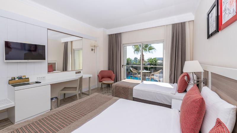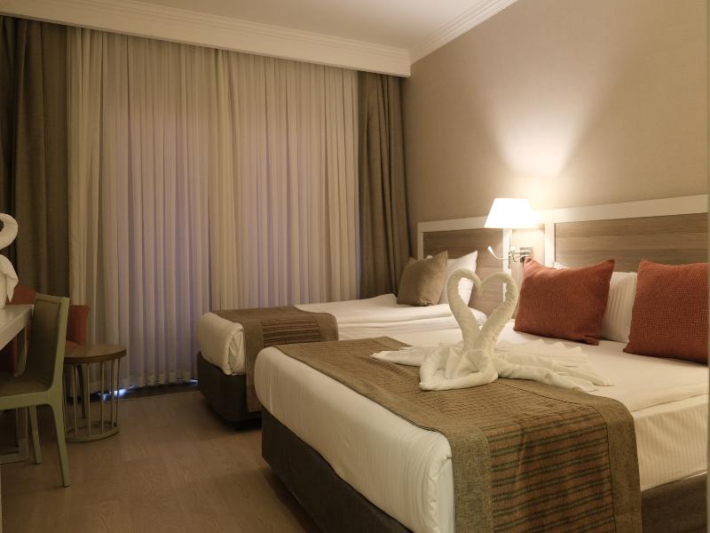 En una ubicación magnífica entre el lago Titreyen y el río Manavgat de color turquesa, en la costa mediterránea de Turquía, este lujoso hotel familiar está idealmente situado para explorar las numerosas atracciones de la zona, como las cascadas de Manavgat y las magníficas ruinas romanas y helenísticas de Side, a 8 km de distancia. A poca distancia de la playa, el hotel ofrece una variedad de actividades para la mayoría de las edades, tanto para aquellos que buscan entretenimiento y deporte como para quienes prefieren actividades más relajantes, como un masaje rejuvenecedor y un baño turco en el spa. Con un mobiliario y una decoración modernos, las habitaciones presentan tonos suaves e incluyen una cama doble y una cama individual para la comodidad de los huéspedes.
